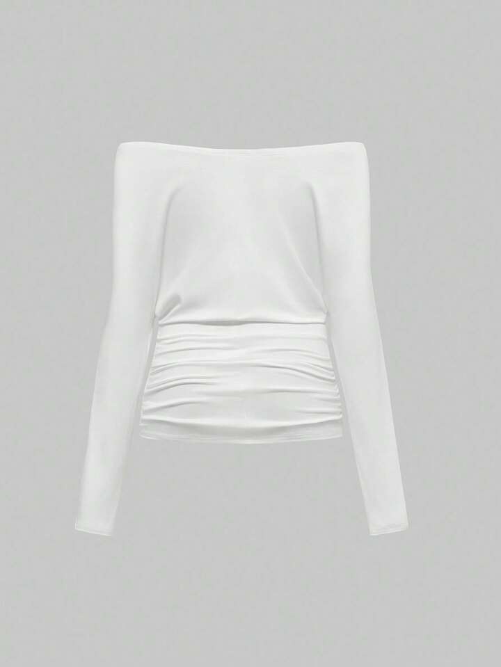 Maglietta a maniche lunghe bianca con stampa, stile kawaii anime Y2K, sexy, spalle scoperte, arricciata e morbida, per donne