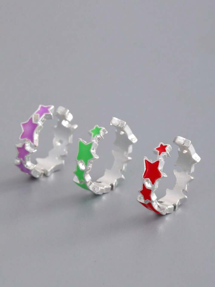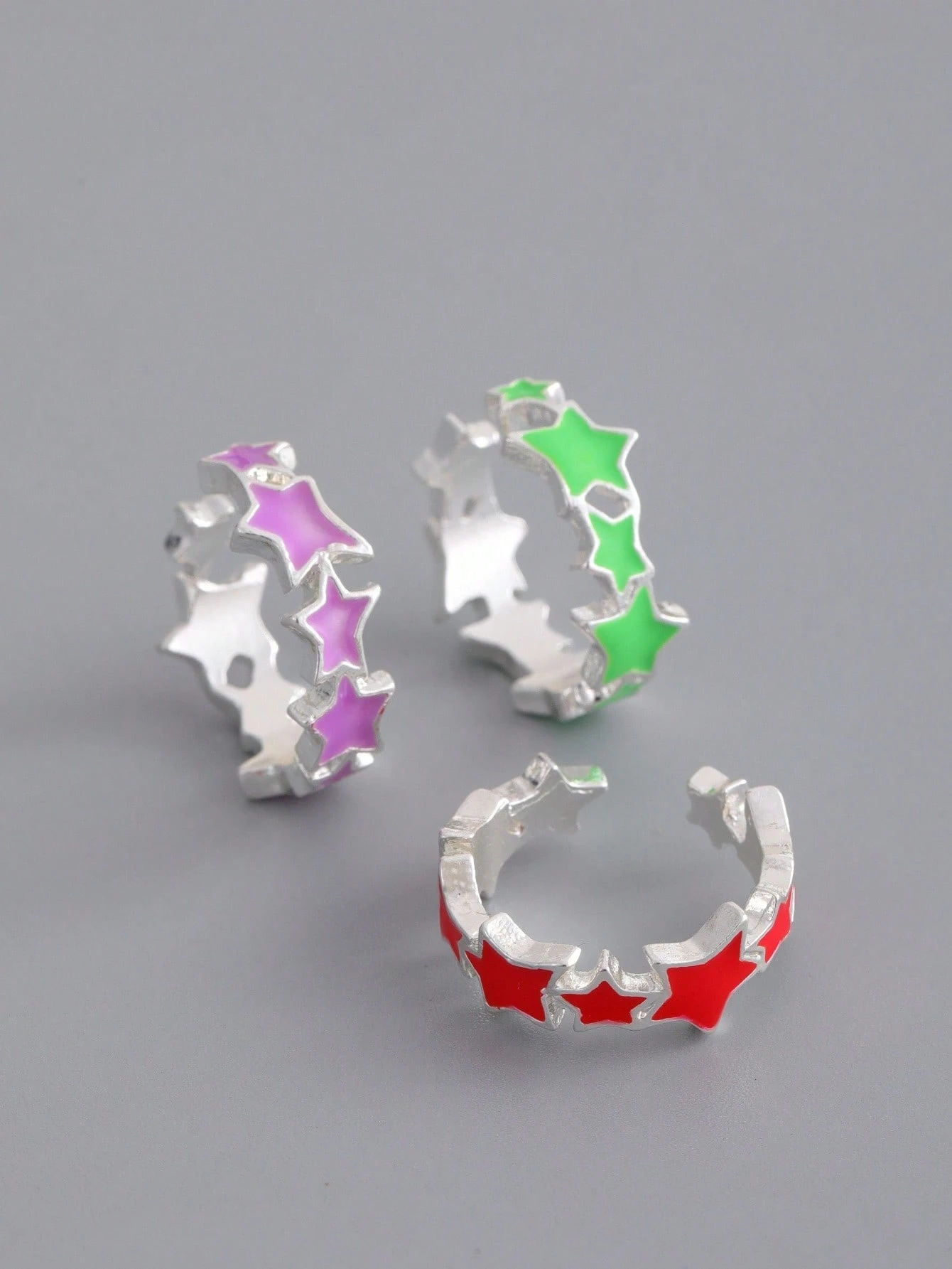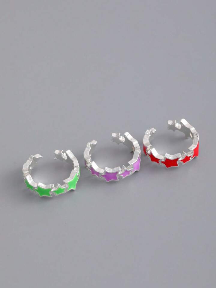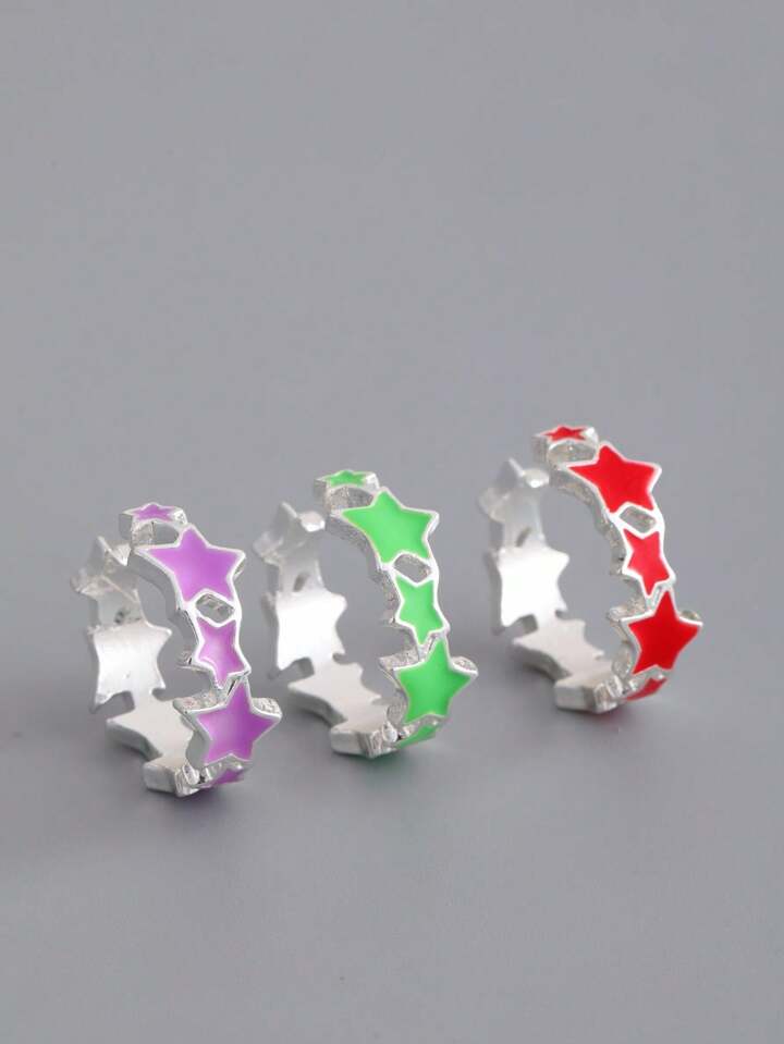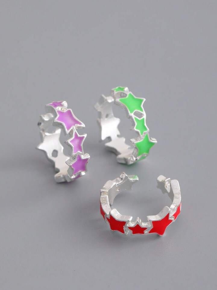 Kawaii Set di anelli asimmetrici e colorati a forma di stelle per donna, accessori unici di anelli per dita con effetto dopamina