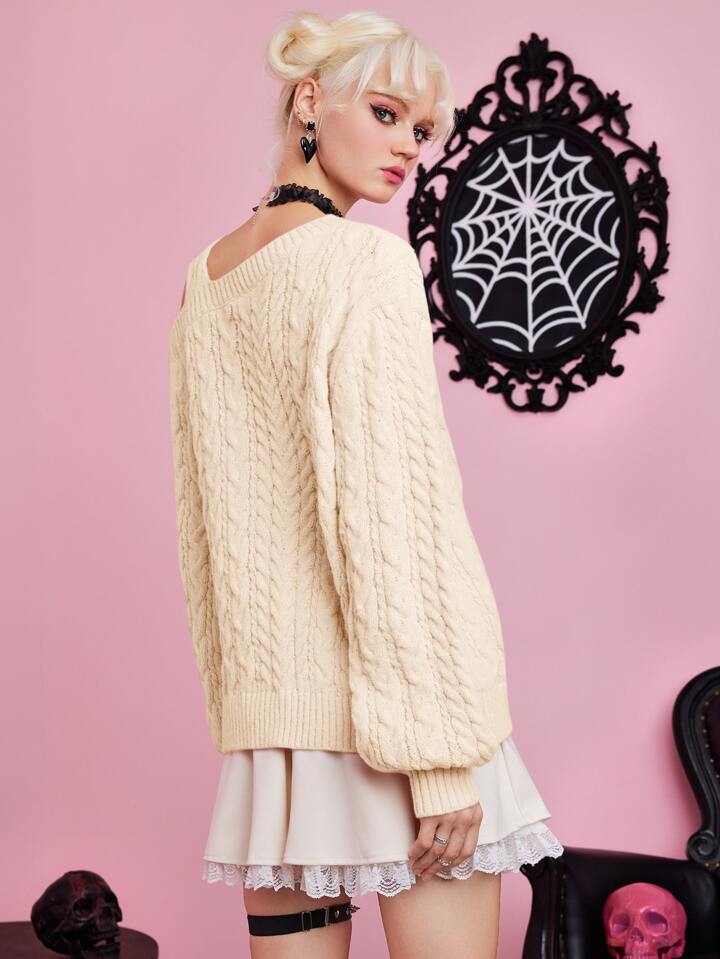 Kawaii Maglione scollatura asimmetrica fiocco frontale in maglia a trecce