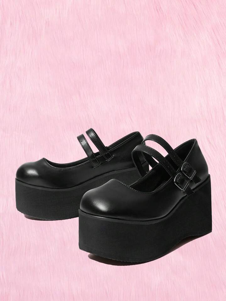 Kawaii Scarpe con zeppe con fibbia mary jane