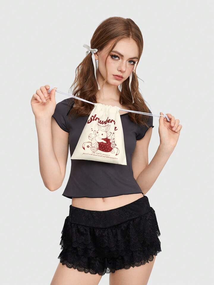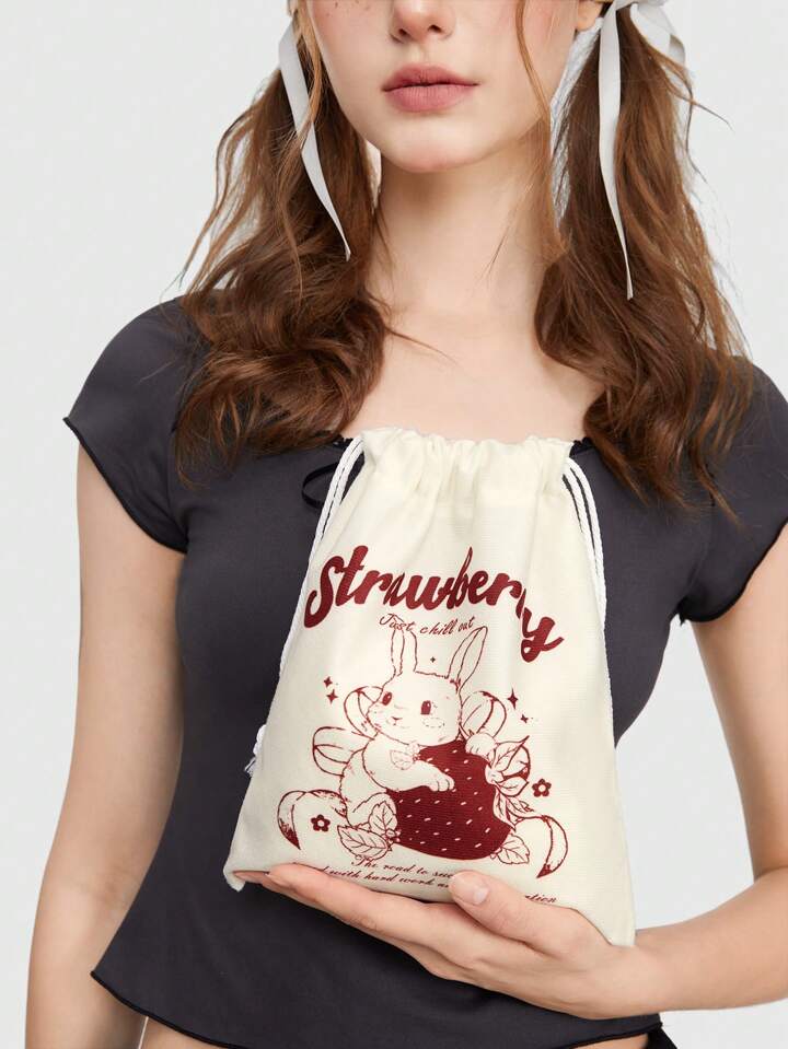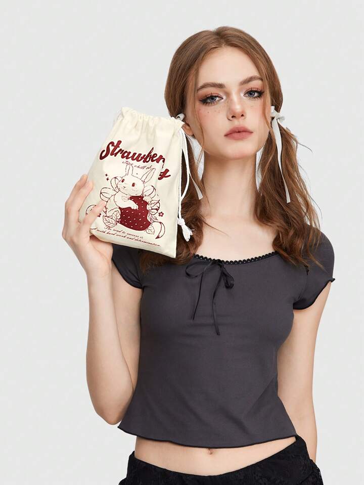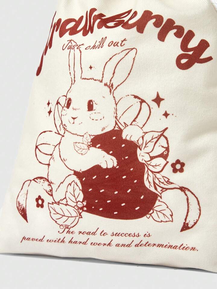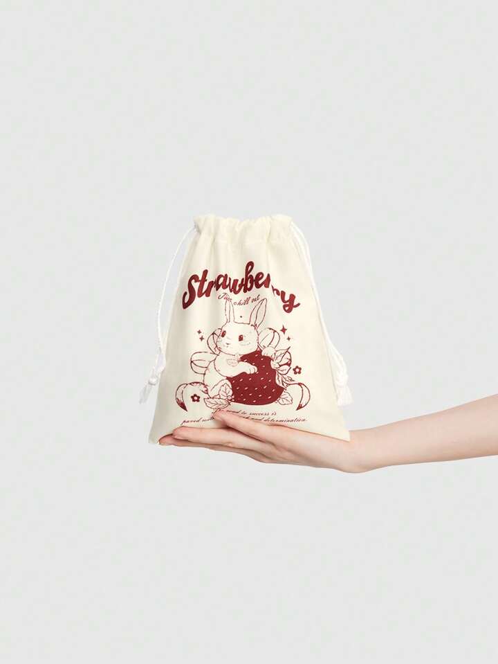 Kawaii Borsa Cosmetica Portatile Con Disegno Di Coniglio Cartone Animato, Capacità Ampia Con Cordoncino Per Il Trasporto E Lo Stoccaggio 605491