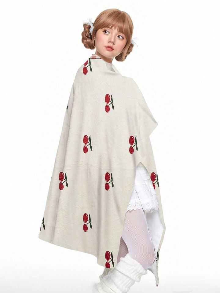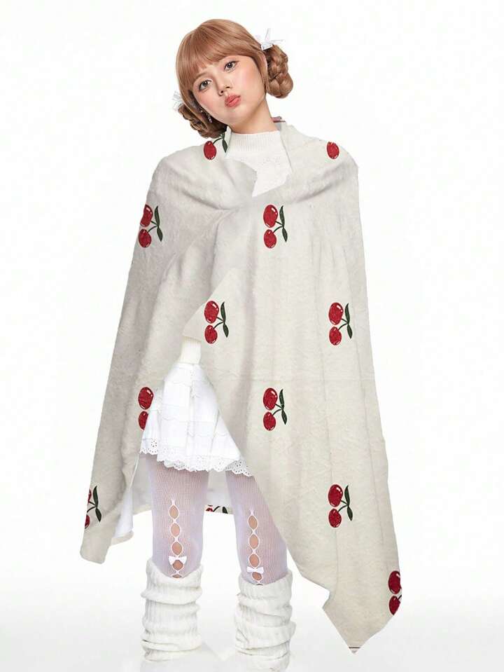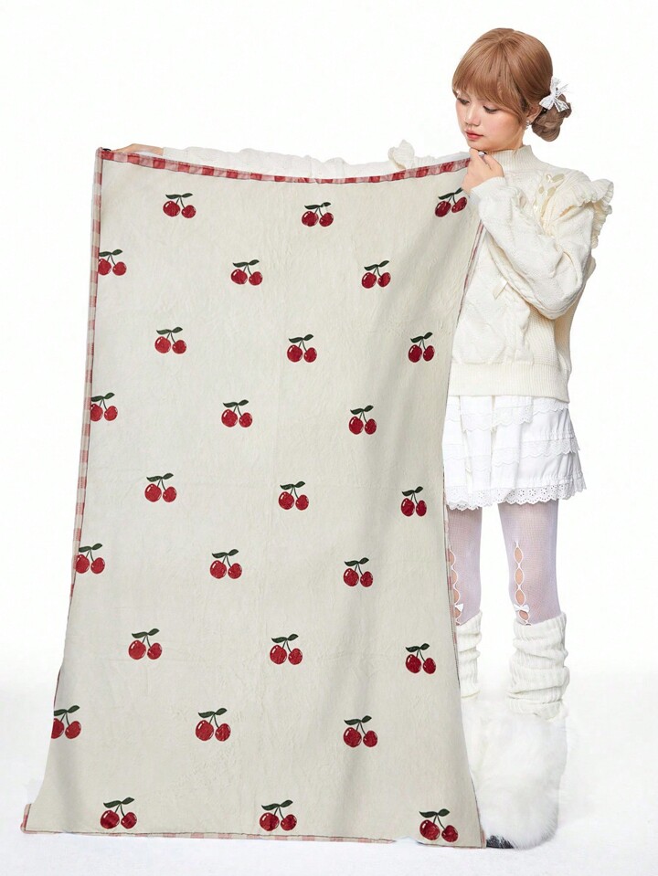 Kawaii Coperta/plaid calda con stampa di ciliegie cartoni animati per soggiorno/divano