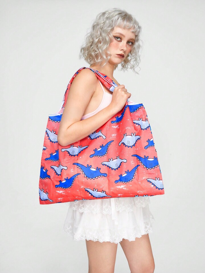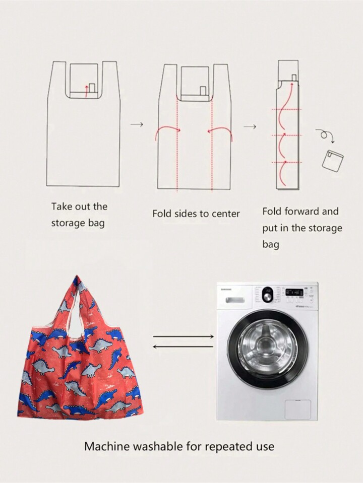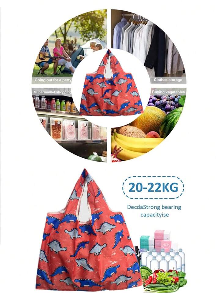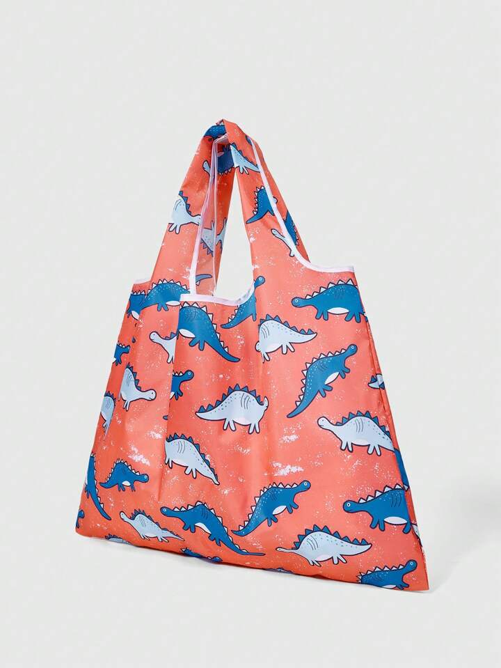 Kawaii Portamonete Con Cerniera Di Grande Capacità Con Stampa Di Dinosauri A Cartone Animato , Borsa Tote Pieghevole Portatile Per Lo Shopping 134814