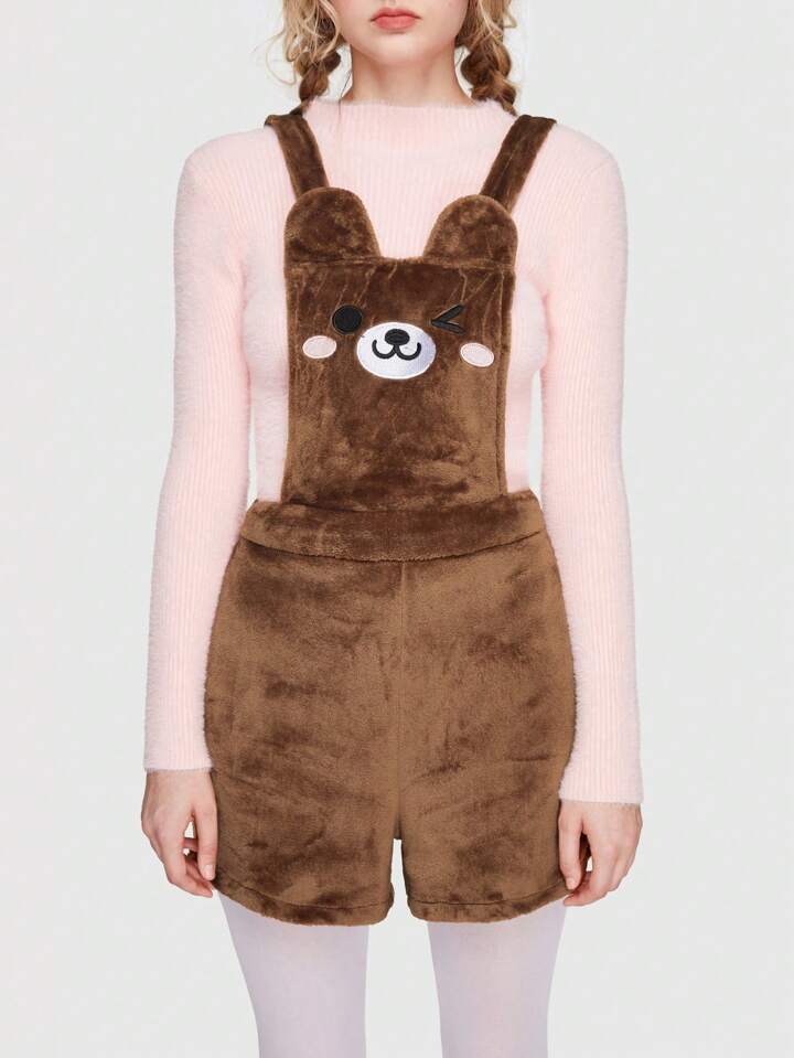 Kawaii Tutina salopette fumetto ricamato 3D orecchio flanella senza maglietta