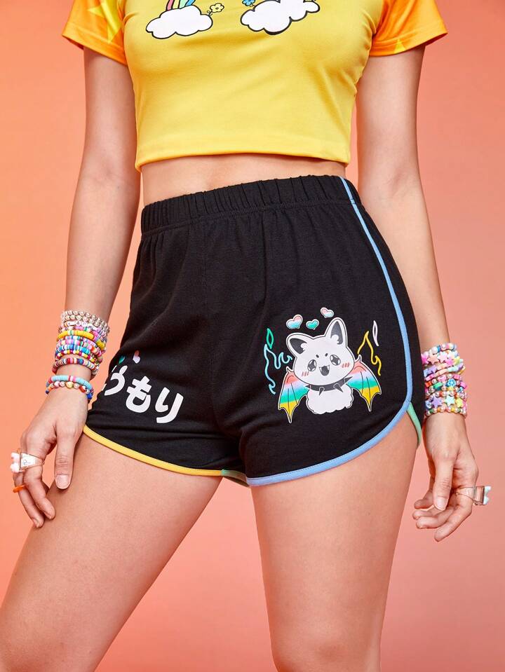 Kawaii Shorts con grafica fumetto bordo a contrasto