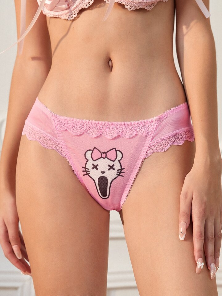 Kawaii Mutandine con grafica fumetto pizzo a contrasto