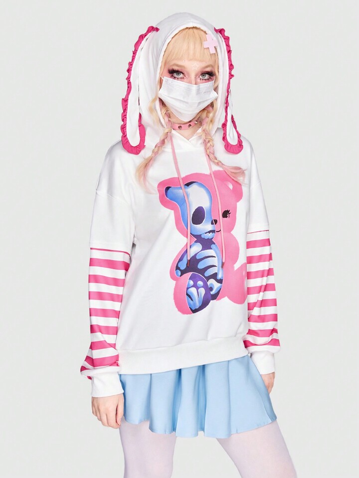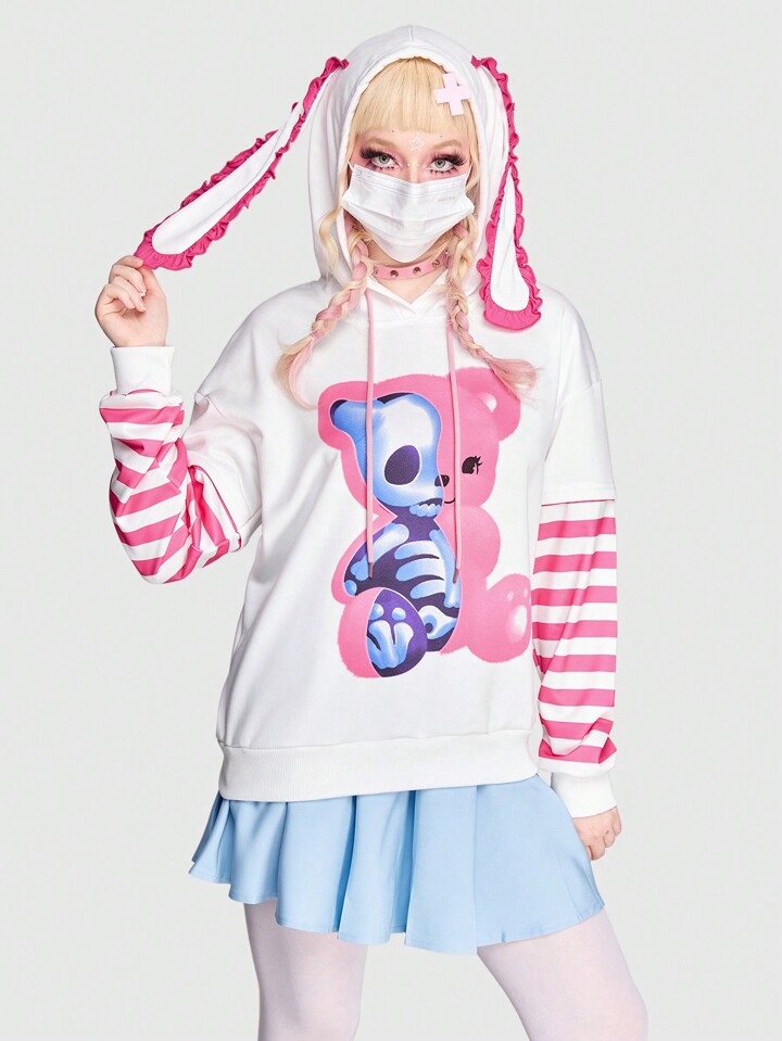 Kawaii Pullover con grafica fumetto spalle cadenti