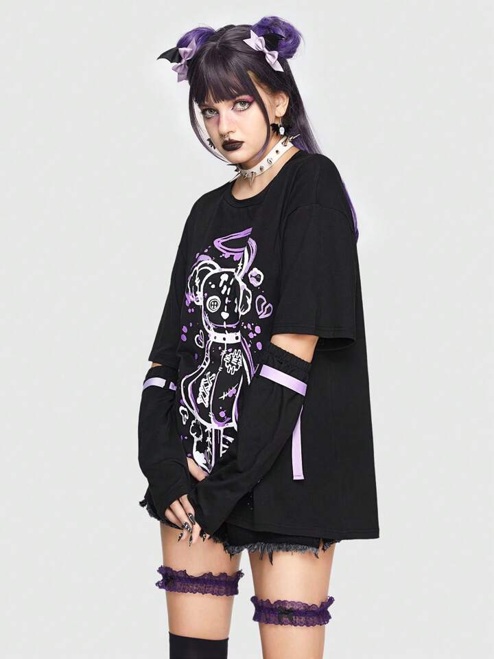 Kawaii Maglietta con spalla cadenti con grafica fumetto