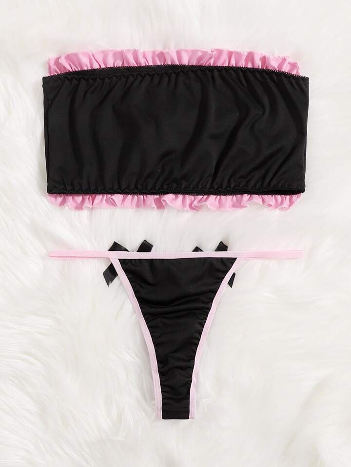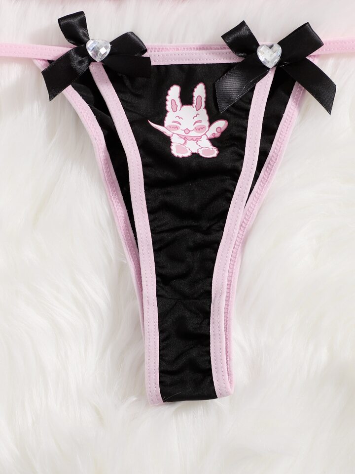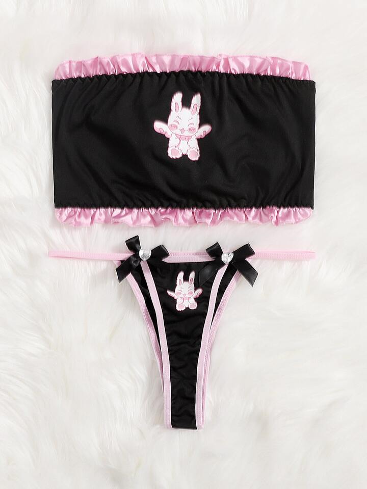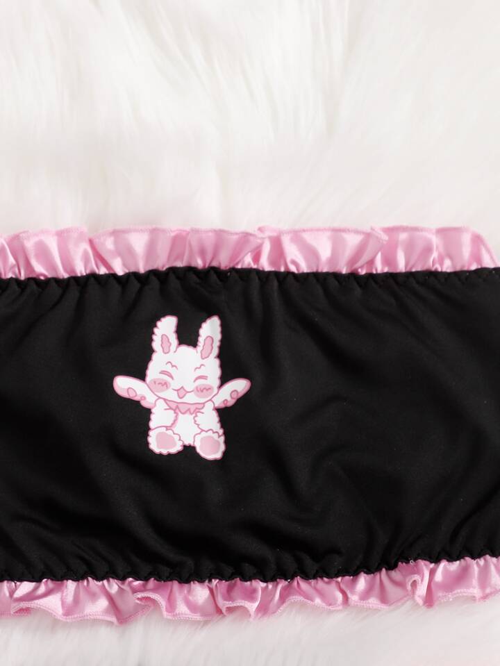 Kawaii Set lingerie bandana con grafica fumetto con volant