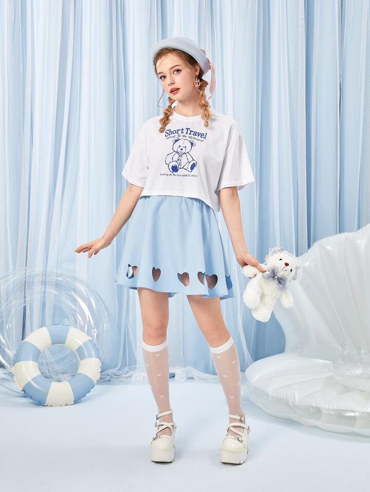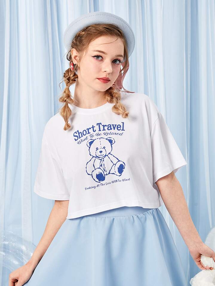 Kawaii Maglietta con spalla cadenti con grafica di cartoni e lettere
