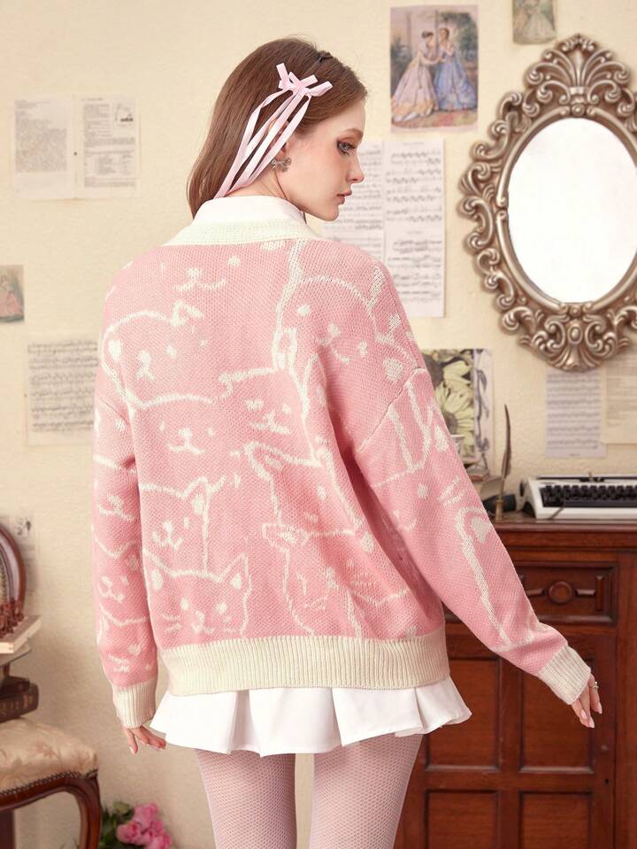 Kawaii Cardigan con modello di cartone animato spalle cadenti