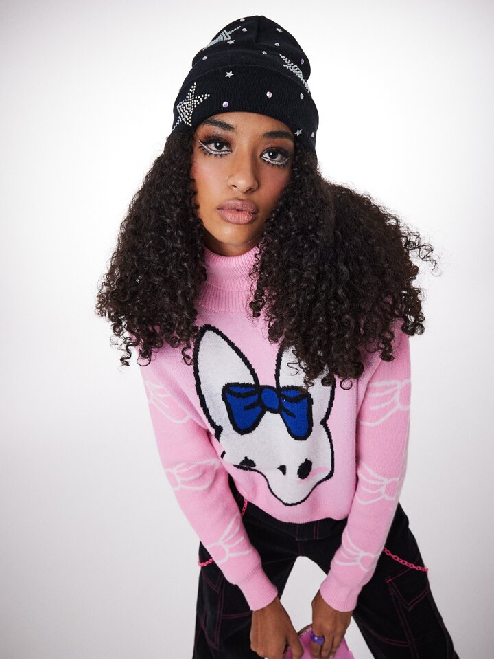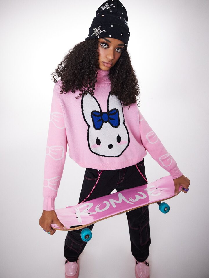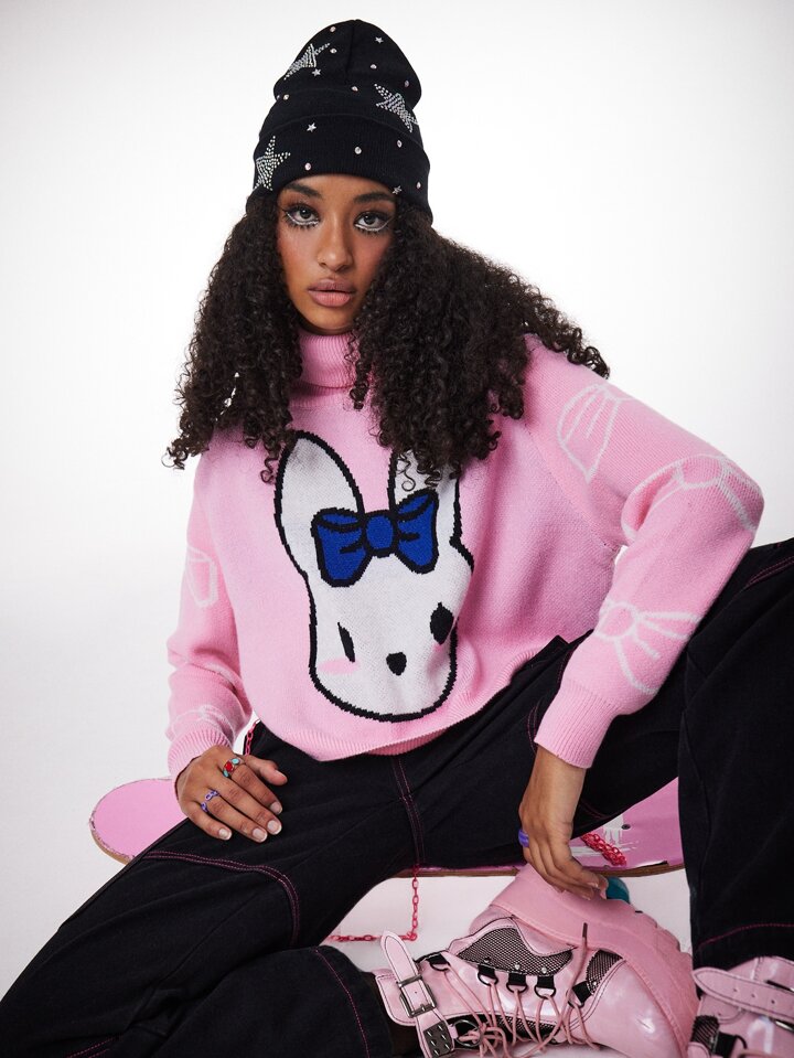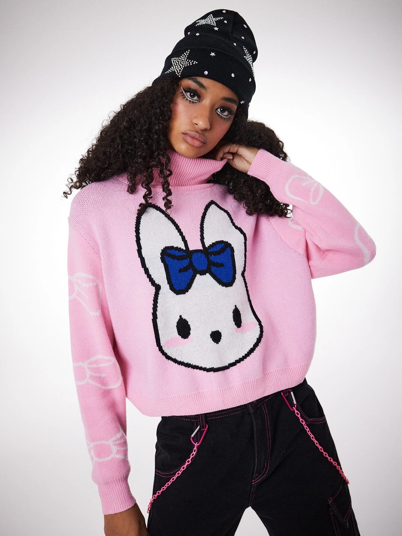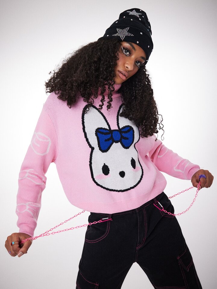 Kawaii Maglione con modello di cartone animato spalle cadenti