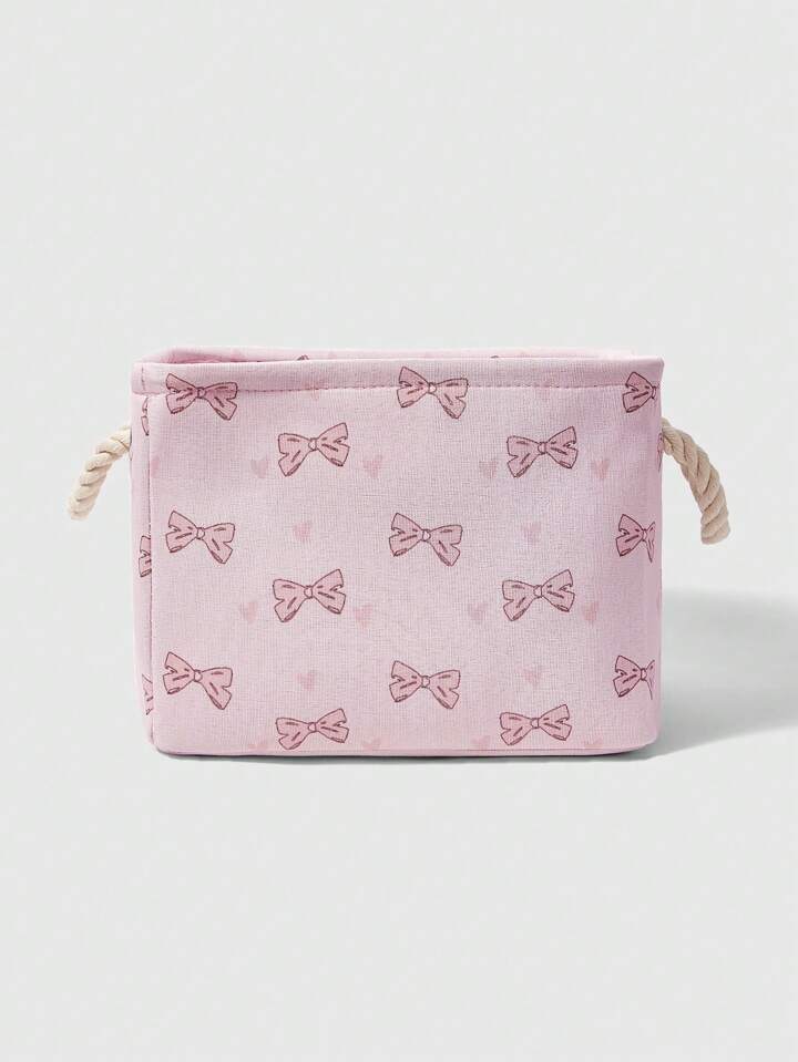 Kawaii Cestino portaoggetti per il bucato, più spesso e resistente, con fiocco rosa a tema cartoni animati
