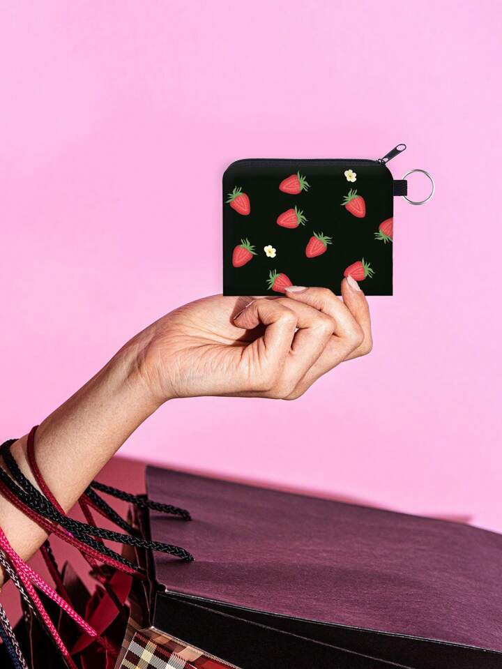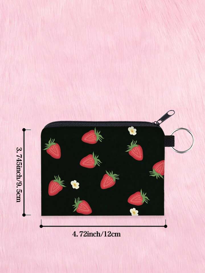 Kawaii Portamonete con stampa di fragole a cartoni animati, San Valentino