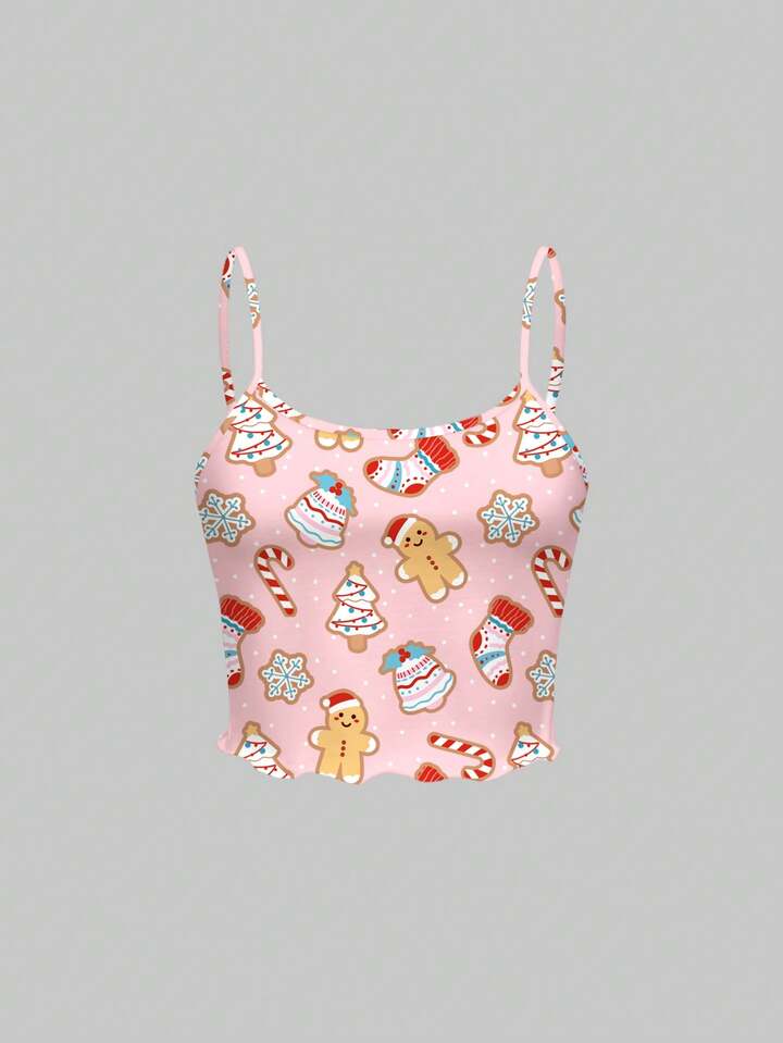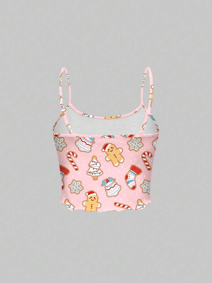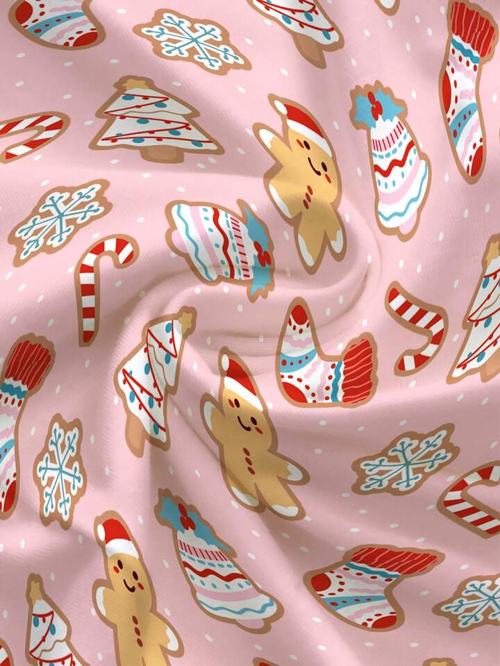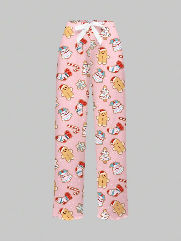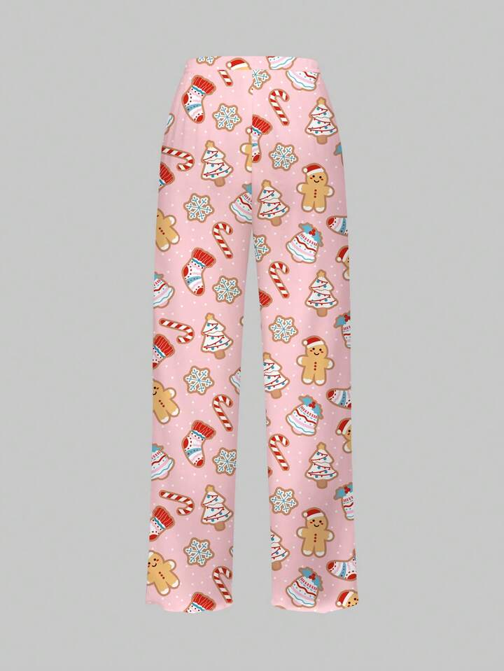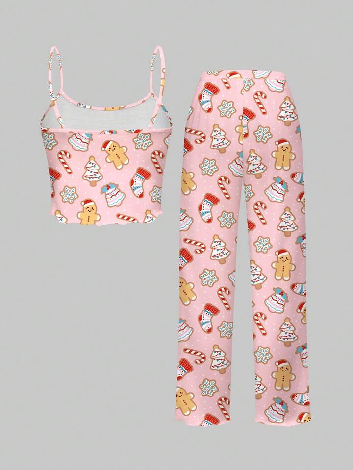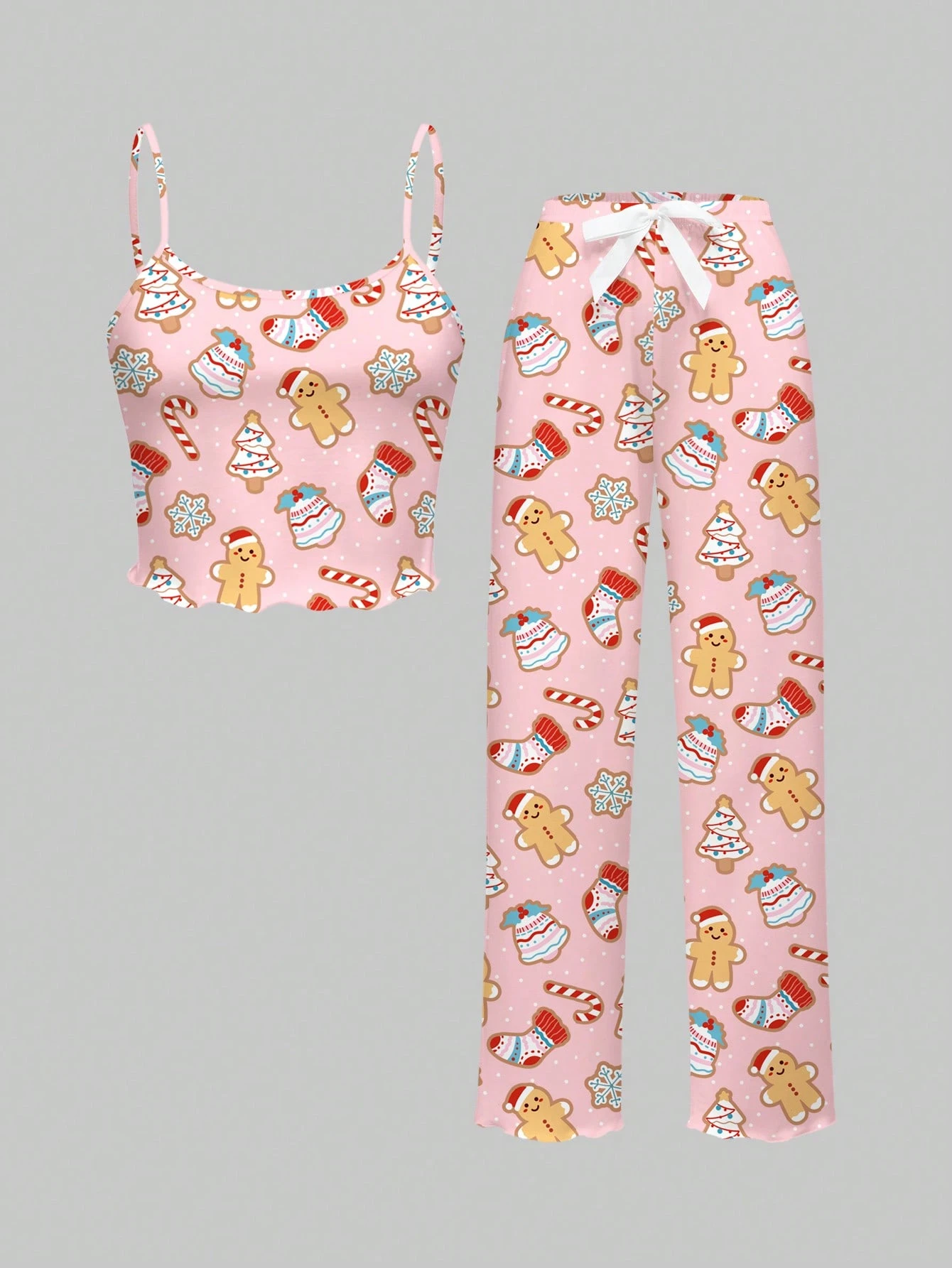 Kawaii Set pigiama overall con stampa cartoni animati di omino di pan di zenzero, cappello di Babbo Natale, pupazzo di neve, fiocco di neve, abbigliamento casual da relax