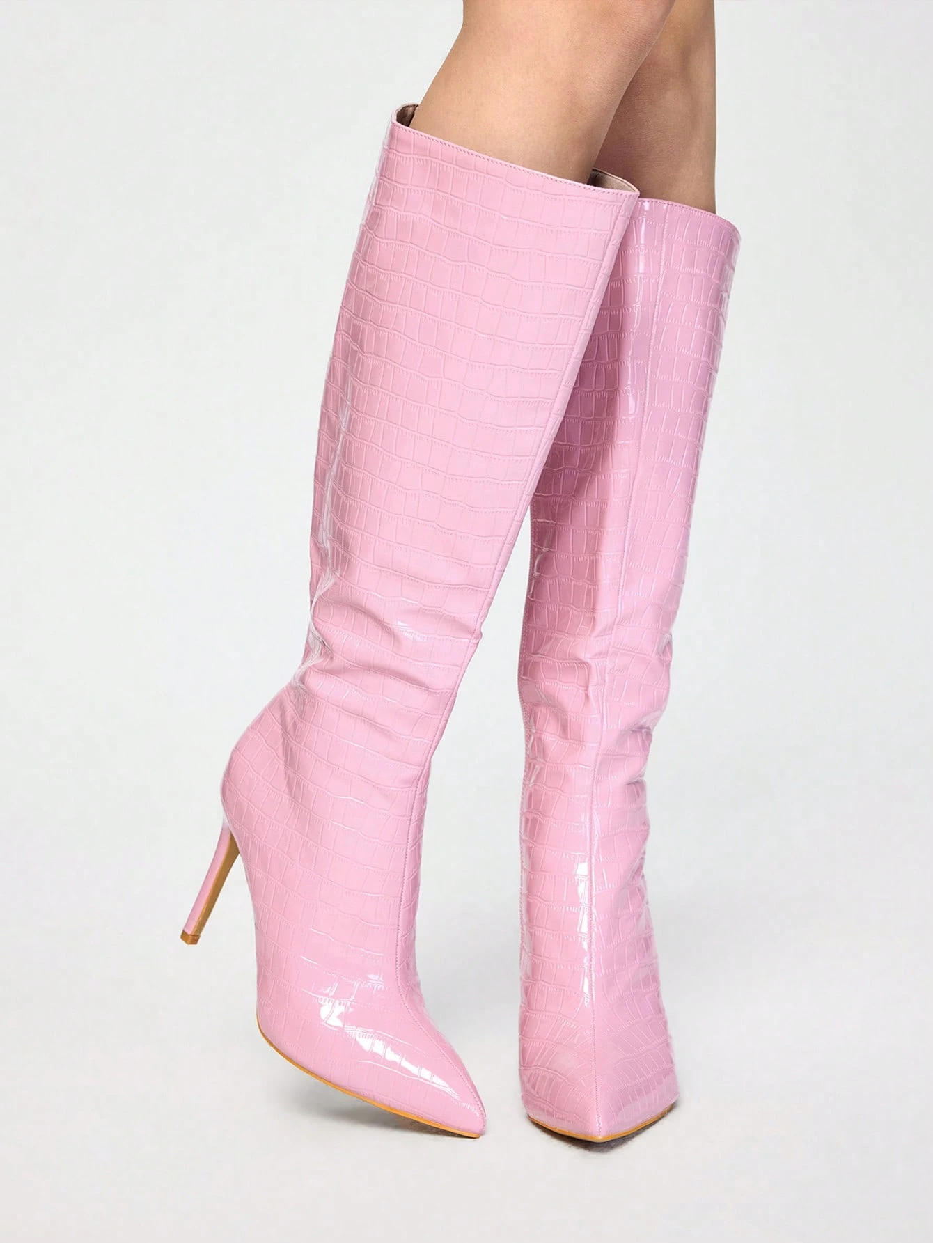 Kawaii Stivali invernali da donna con punta affusolata, cerniera, texture in pietra, stivali alti al ginocchio, tacco alto