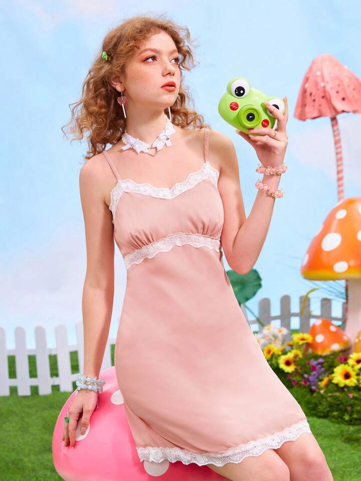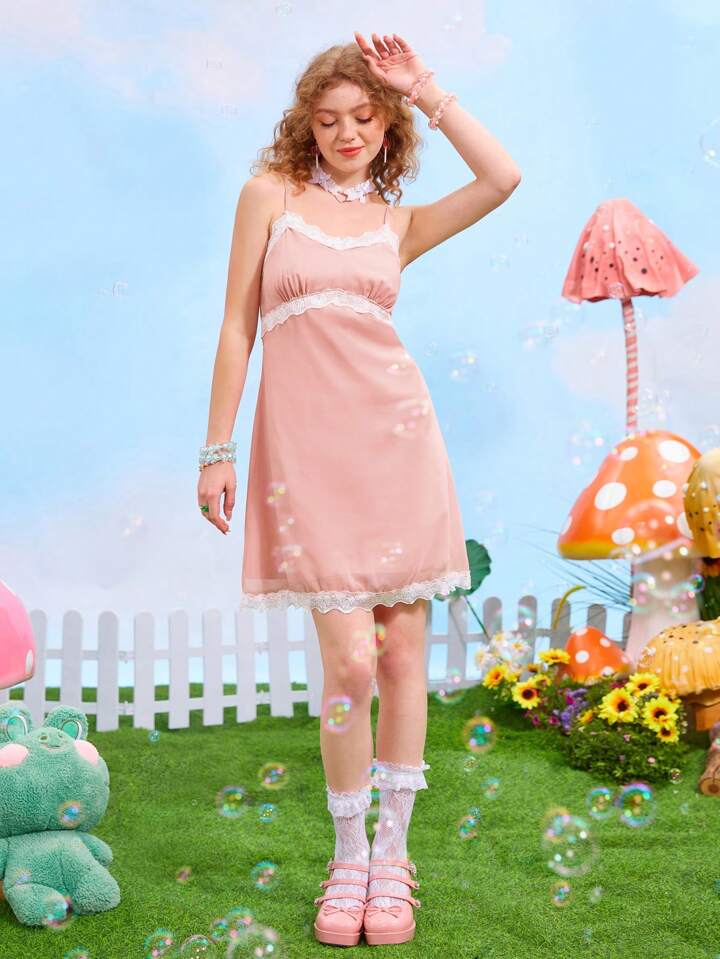 Kawaii Abito con bretelle sottile pizzo a contrasto