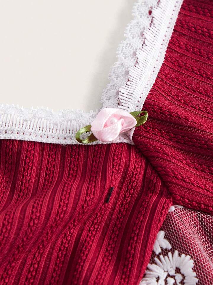 Kawaii Top bretelle sottile pizzo a contrasto