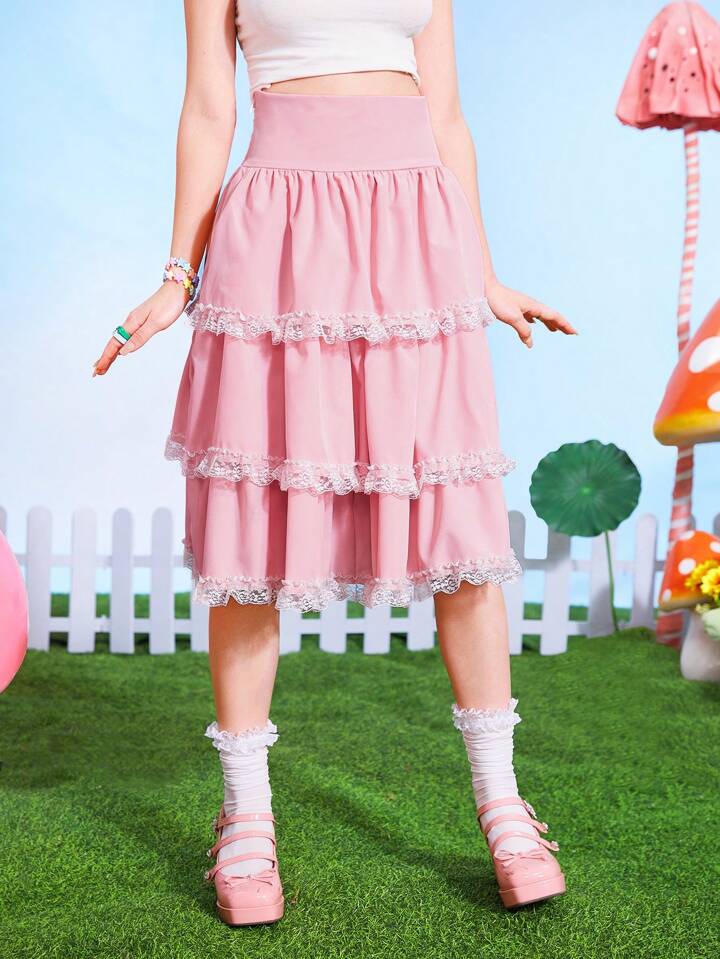 Kawaii Gonne pizzo a contrasto orlo a strati