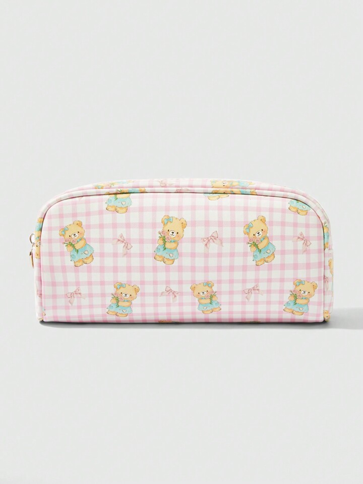 Kawaii Astuccio per matite con orsetto a quadri carino, portamatite da scrivania a grande capacità per studenti, borsa organizzatrice creativa e minimalista per il trucco, 1 pezzo