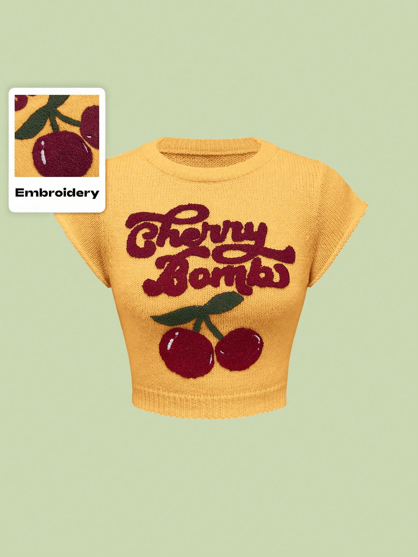 Kawaii Maglione da donna con collo alto, maniche a lanterna e ricamo di ciliegie, in stile collegiate carino e innocente