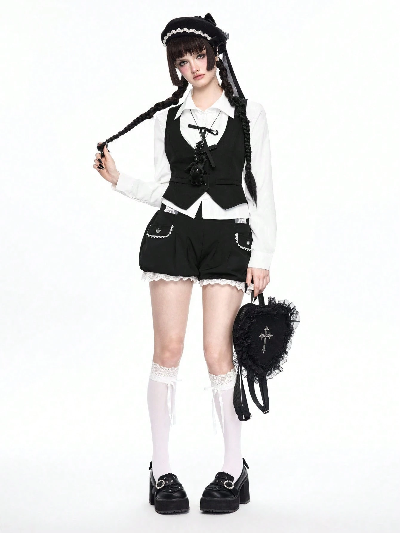 Kawaii Pantaloncini a lanterna da donna con applicazioni in pizzo