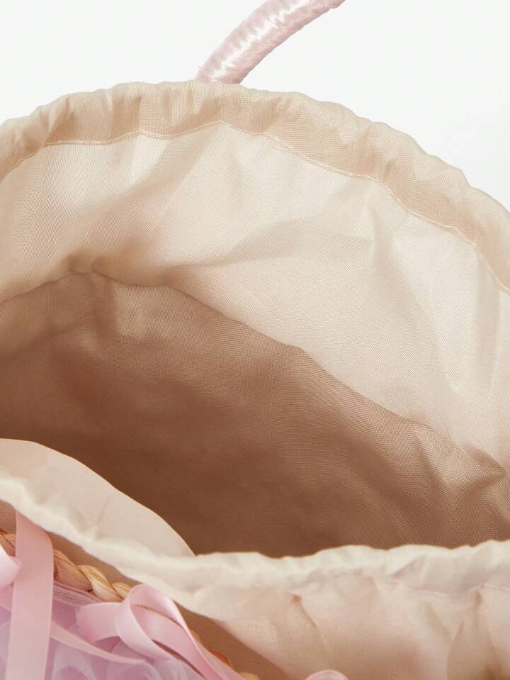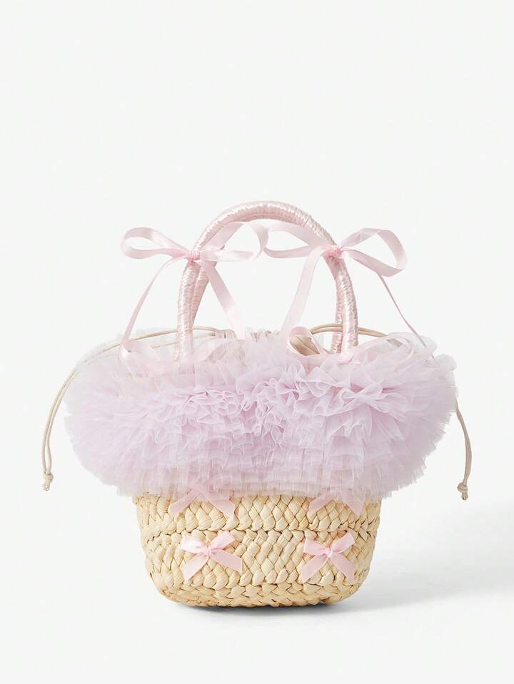 Kawaii Borsa di paglia carina con fiocco in rete