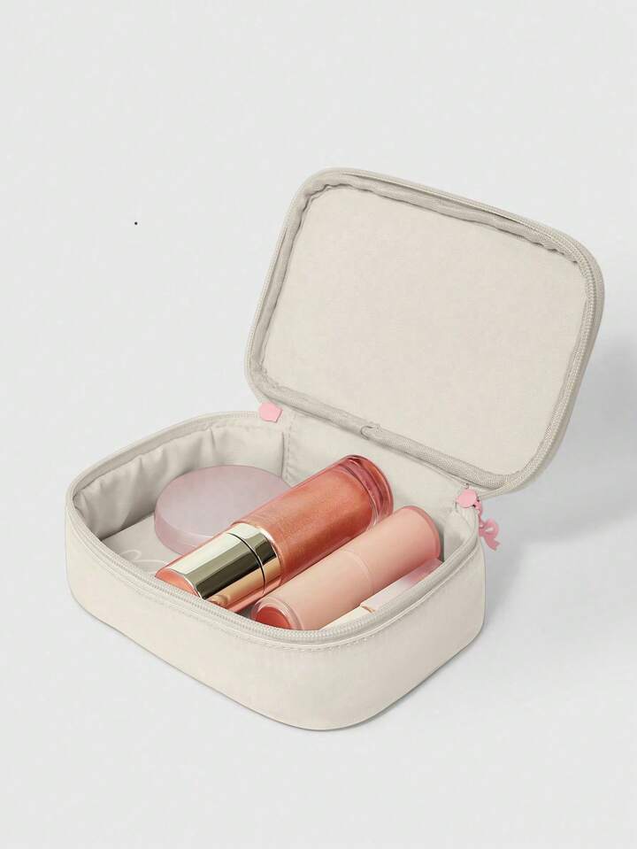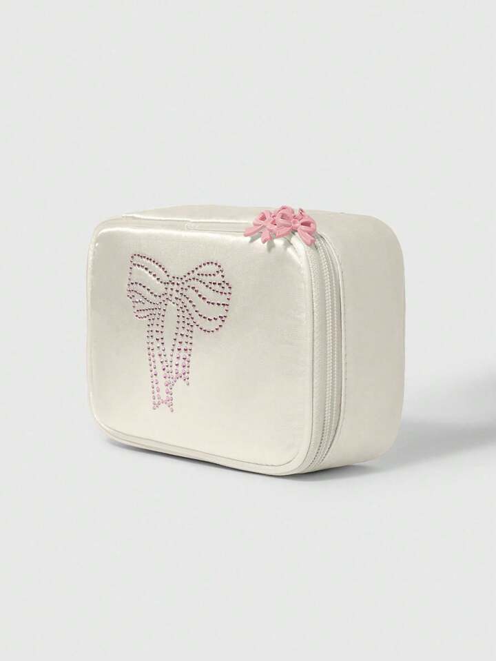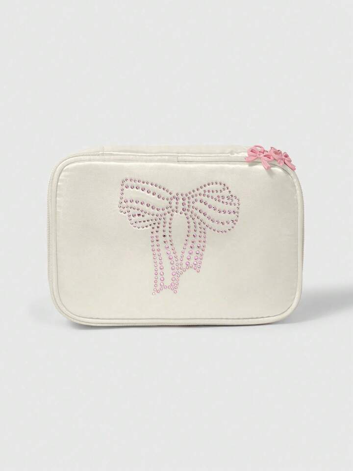 Kawaii Borsetta trucco rosa carina con ricamo a fiocco