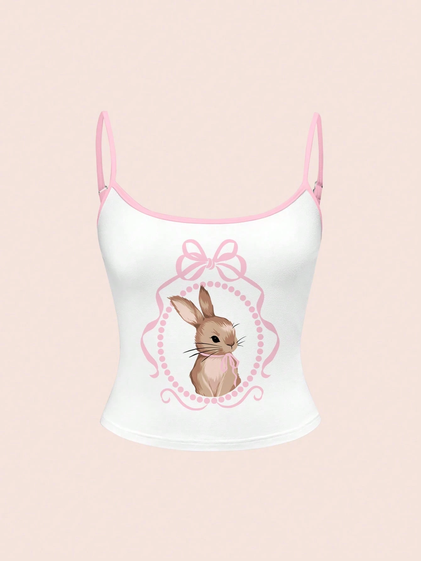Kawaii Canottiera da donna in stile college, innocente e sexy, con fiocco a forma di coniglio, adatta alla primavera