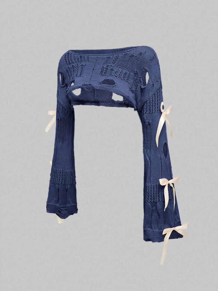 Kawaii Maglione da donna oversize e morbido con fiocco e spalle scollate