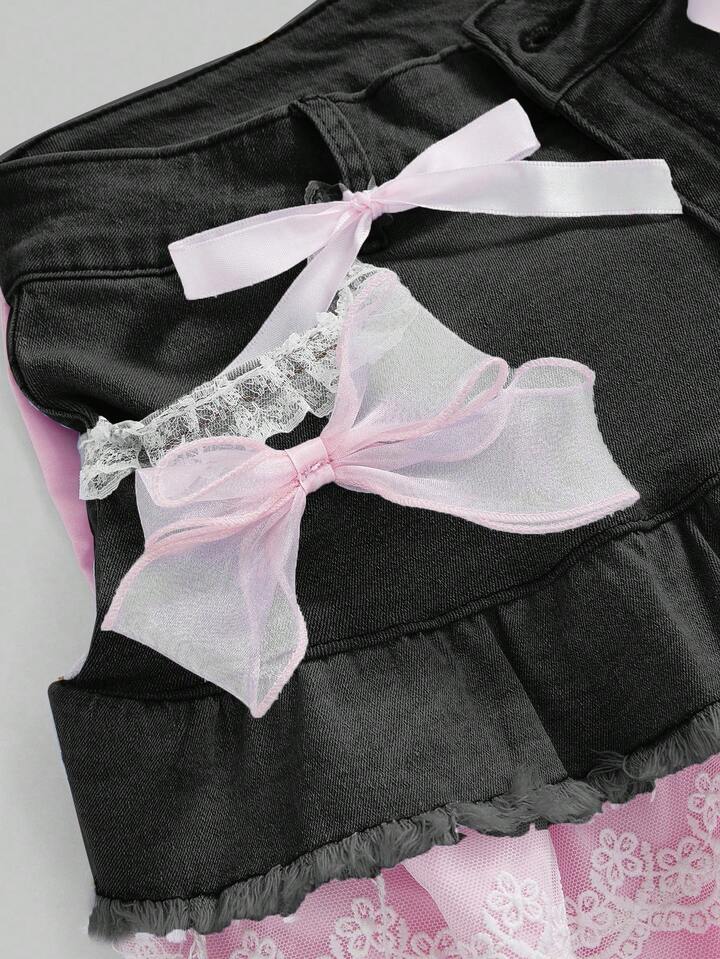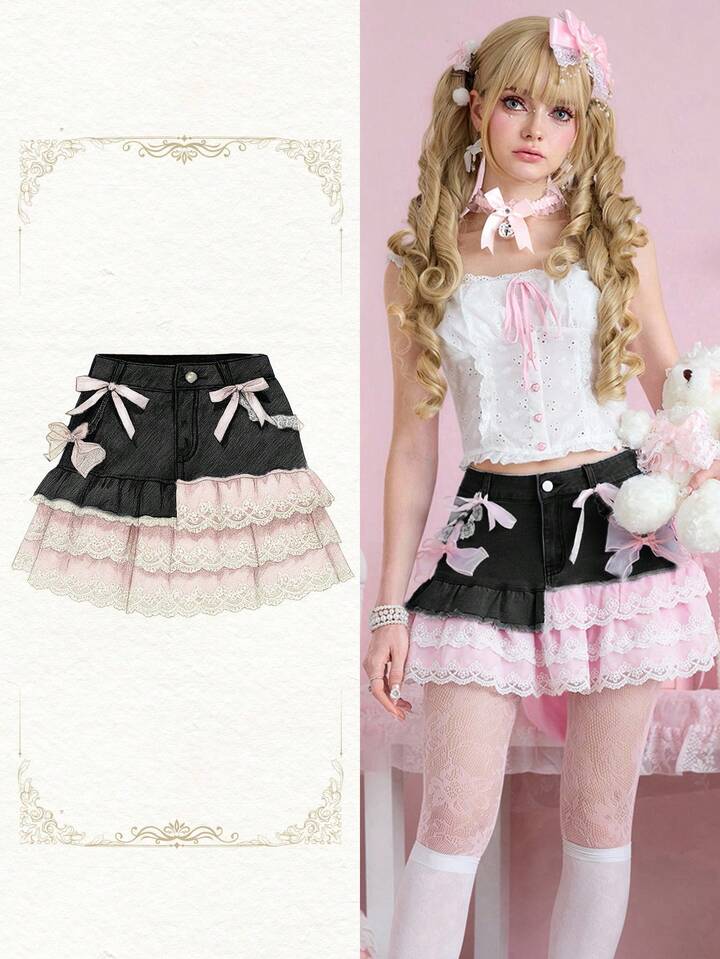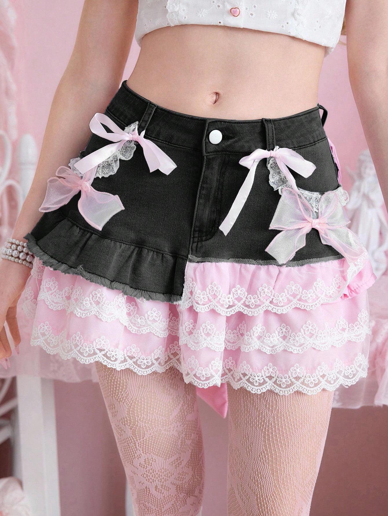 Kawaii Gonna di jeans mini con orlo a volant, carino e dolce