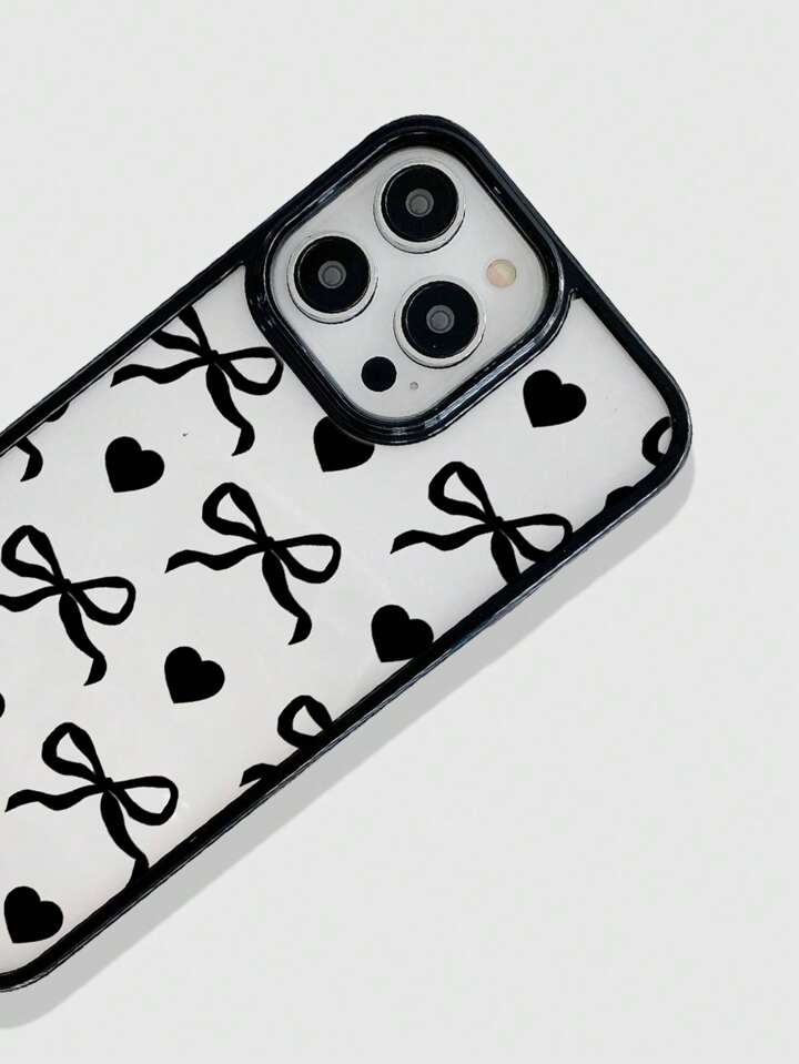 Kawaii Custodia protettiva in silicone con bordo nero, a forma di cuore dolce e piccante con fiocco, compatibile con iPhone 12, 13, 14 e altri telefoni