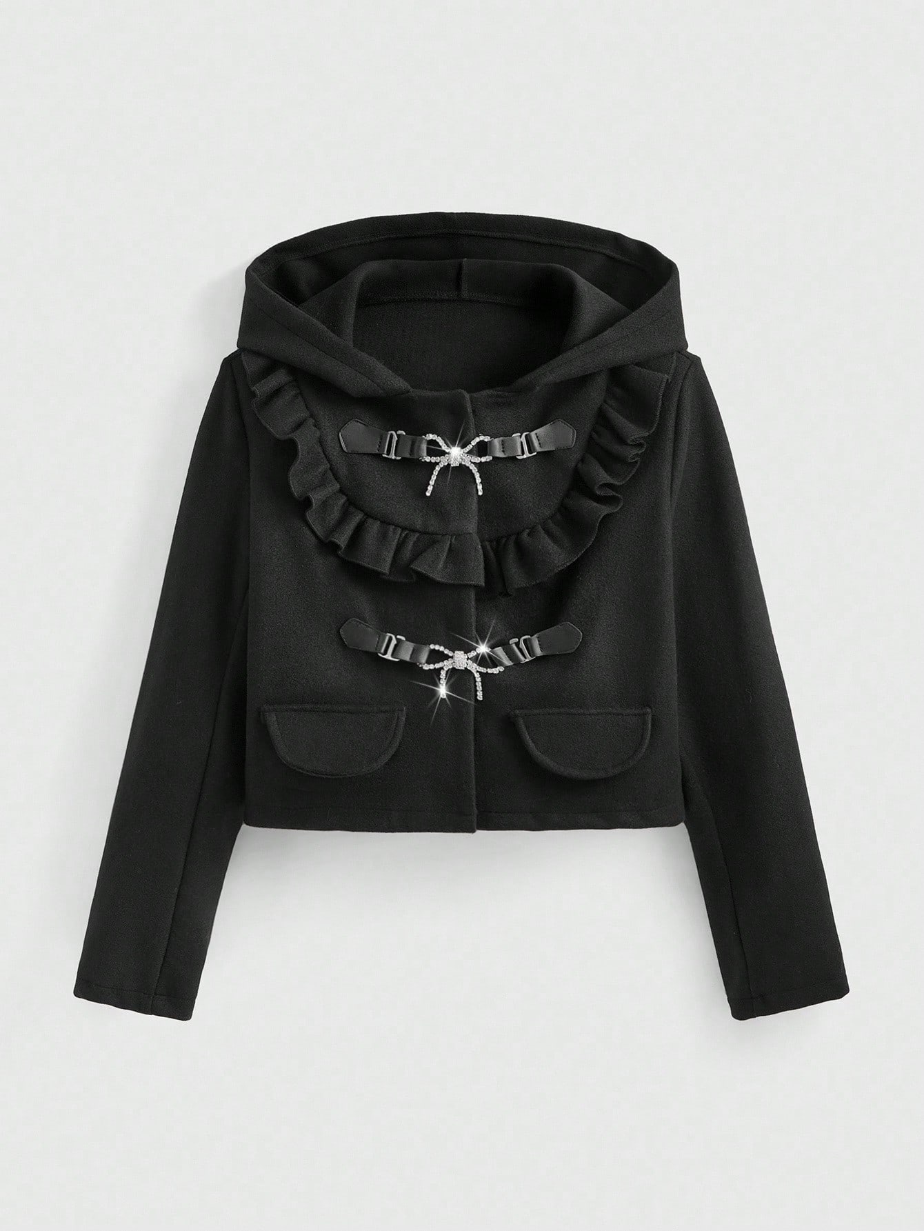 Kawaii Giacca con cappuccio da donna autunnale carina e dolce, con maniche lunghe, fiocco e design con bottoni