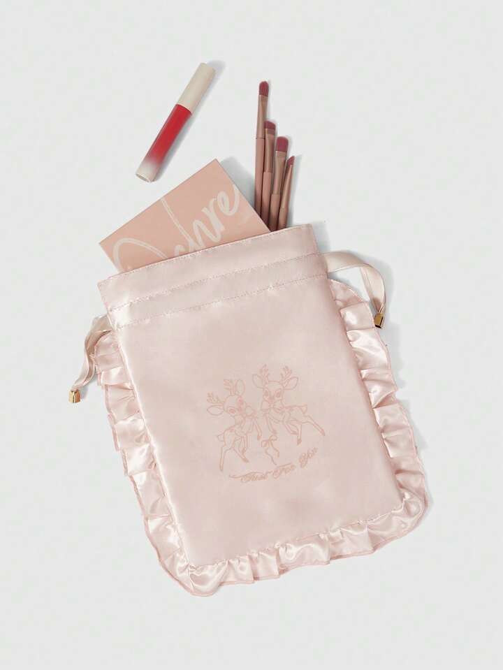 Kawaii Borsa cosmetica ricamata con cervo, borsa da viaggio con laccio per biancheria intima e lingerie