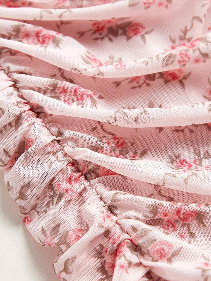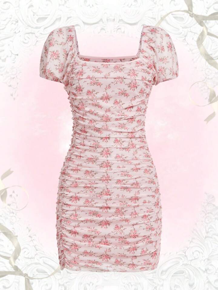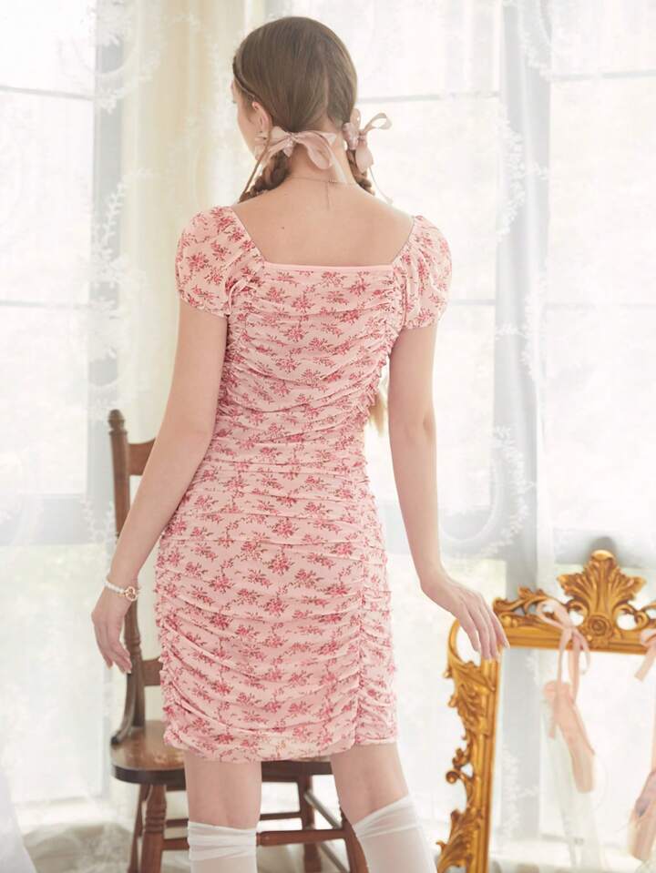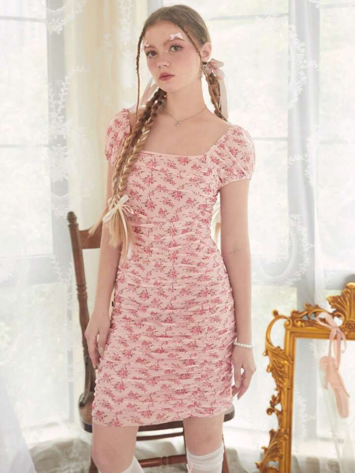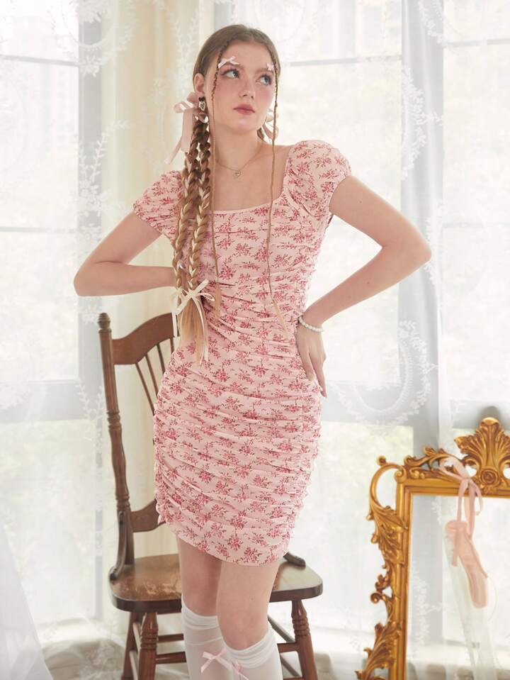 Kawaii Abito aderente con stampa fiorellini plissettato