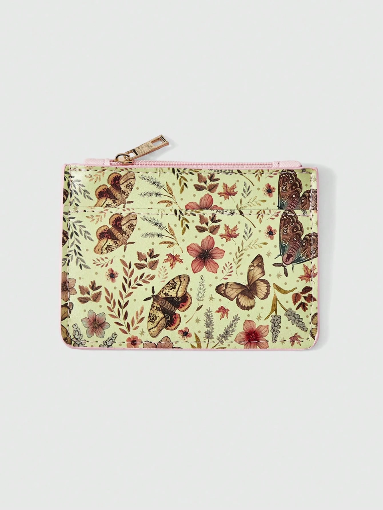 Kawaii Elegante portacarte con sfondo viola e fiori bianchi