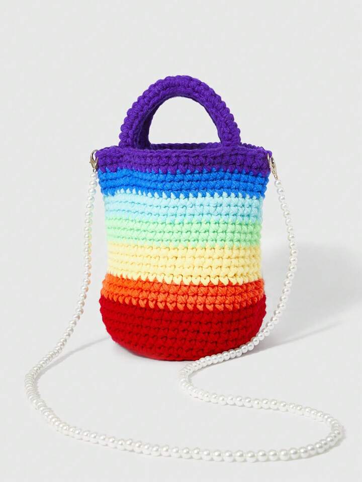Kawaii Borsa secchiello a tracolla con catena lavorata a maglia, di