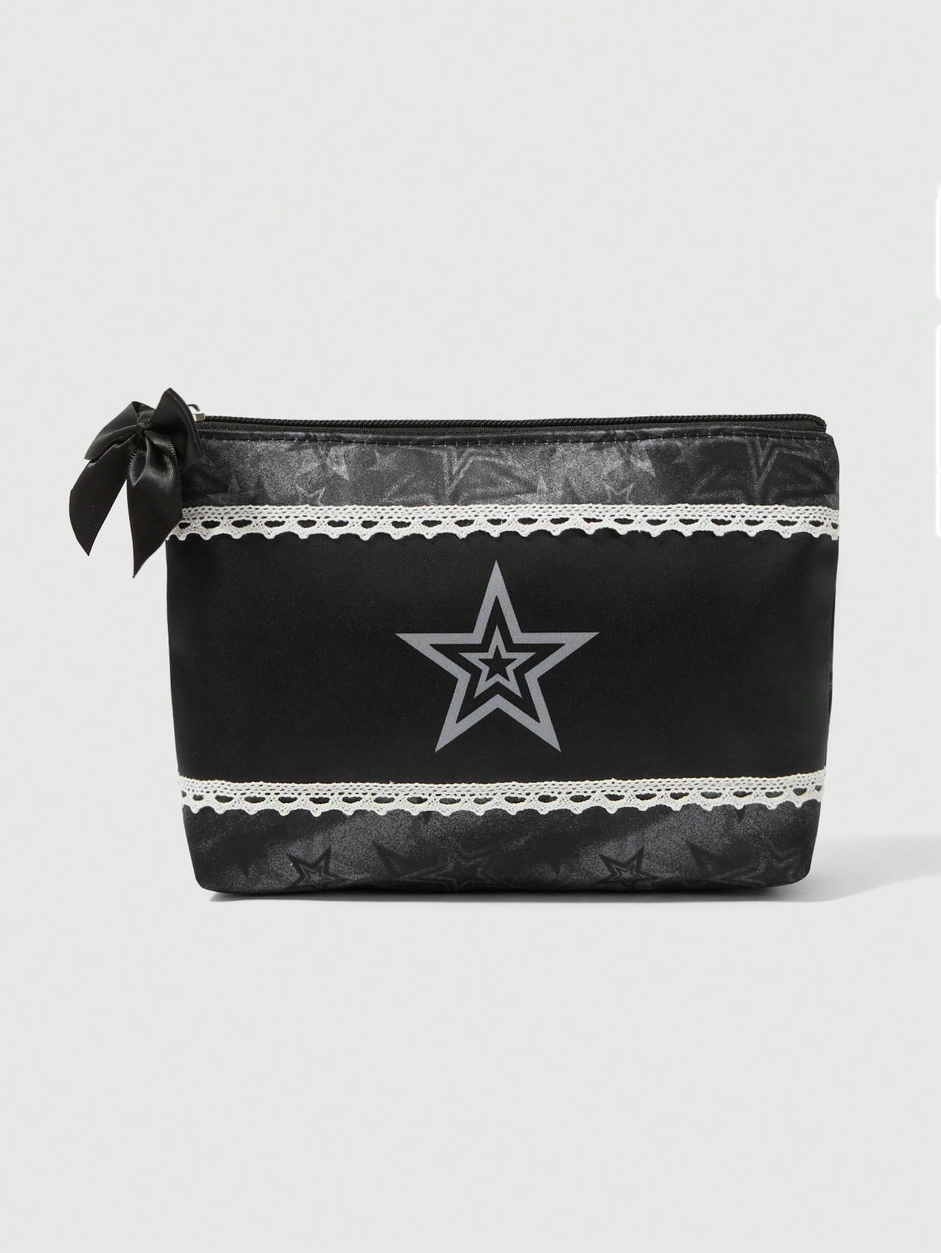 Kawaii Borsa cosmetica da donna di moda punk alla moda con motivo a stella, di grande capacità, portatile, trasparente per il trucco (articolo# 103978/1439826)