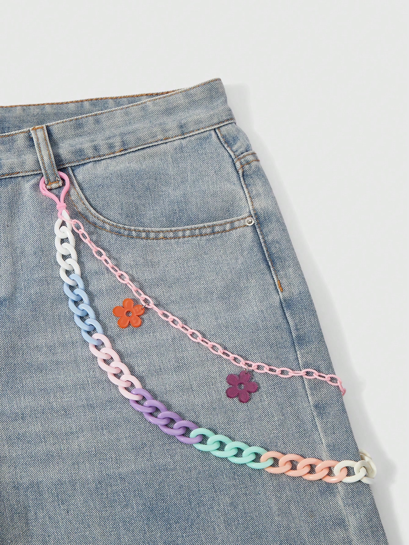 Kawaii Pantaloni alla moda hip hop, con catena in resina a doppio strato, pantaloni hipster da influencer, stile punk con colori arcobaleno sfumati, catena staccabile, adatti per estate, scuola, autunno, Ognissanti