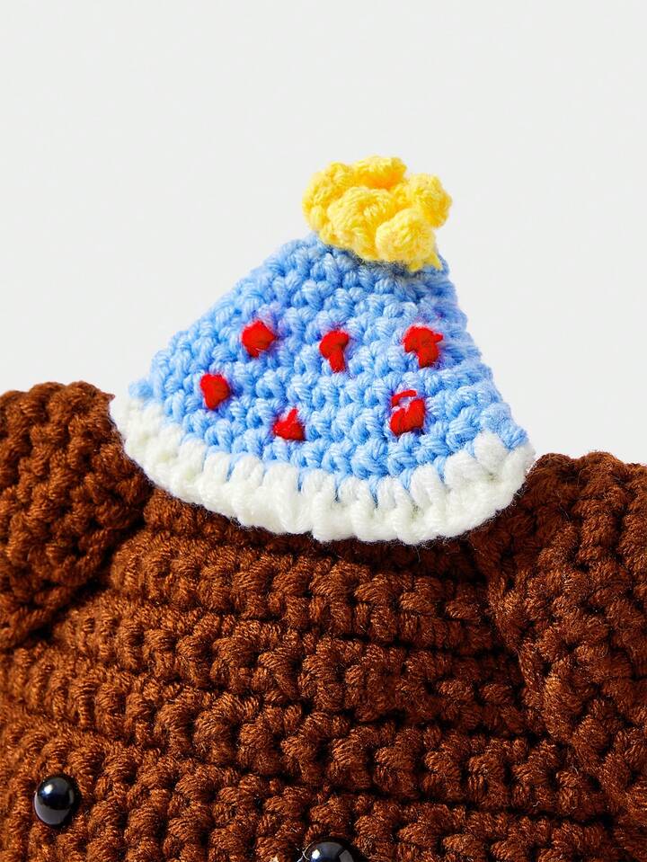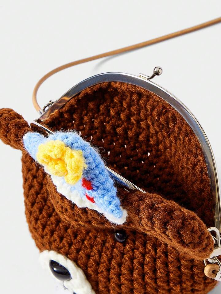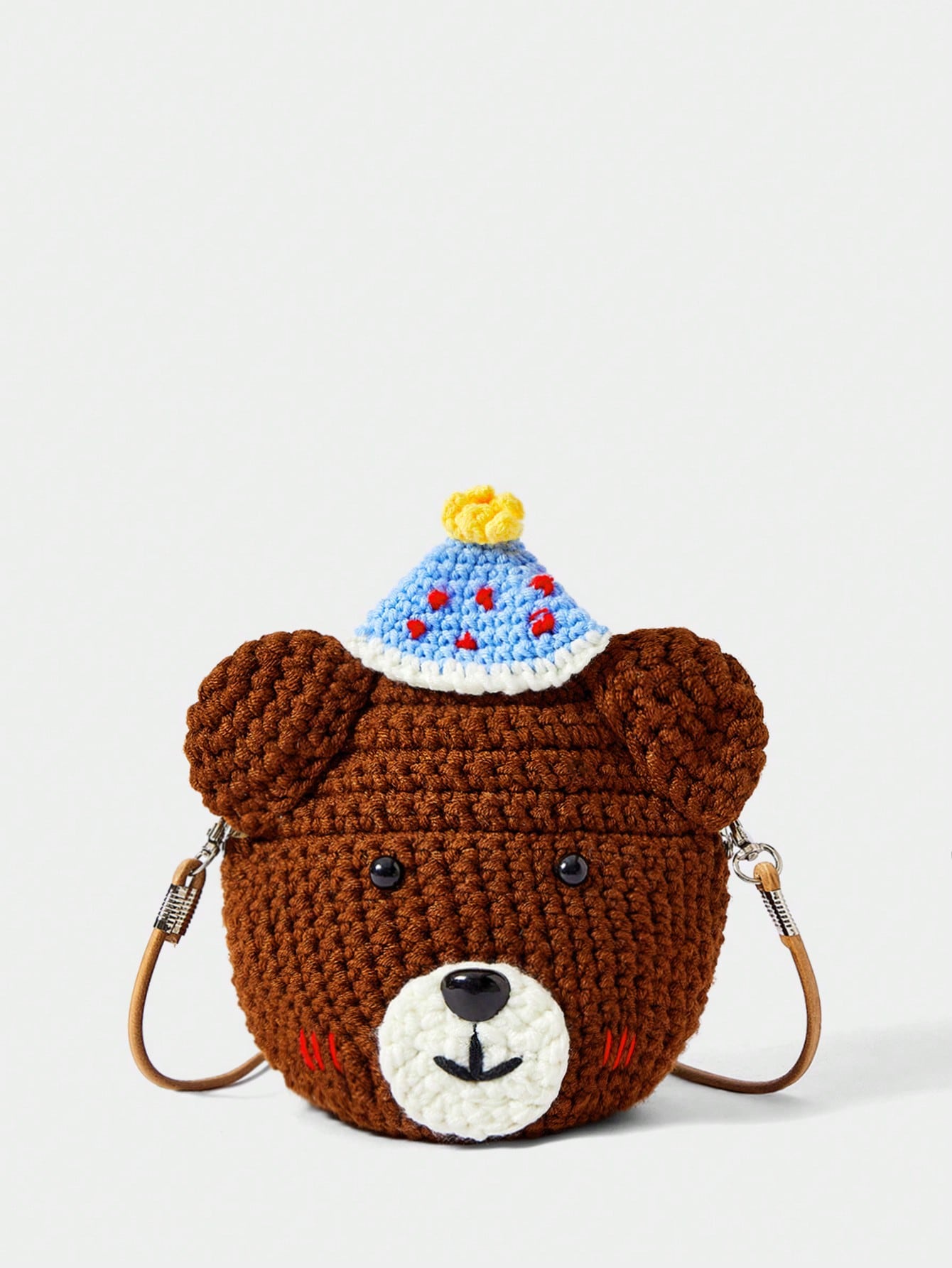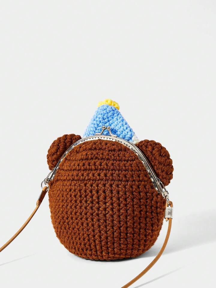 Kawaii Borsa a tracolla alla moda a forma di orsetto di peluche lavorato a maglia, stile carino e senza spalle per ragazze