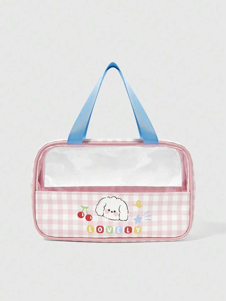 Kawaii Elegante trousse da toilette in stile toppework a quadri trasparente