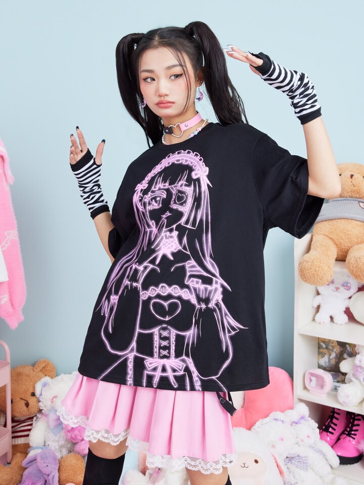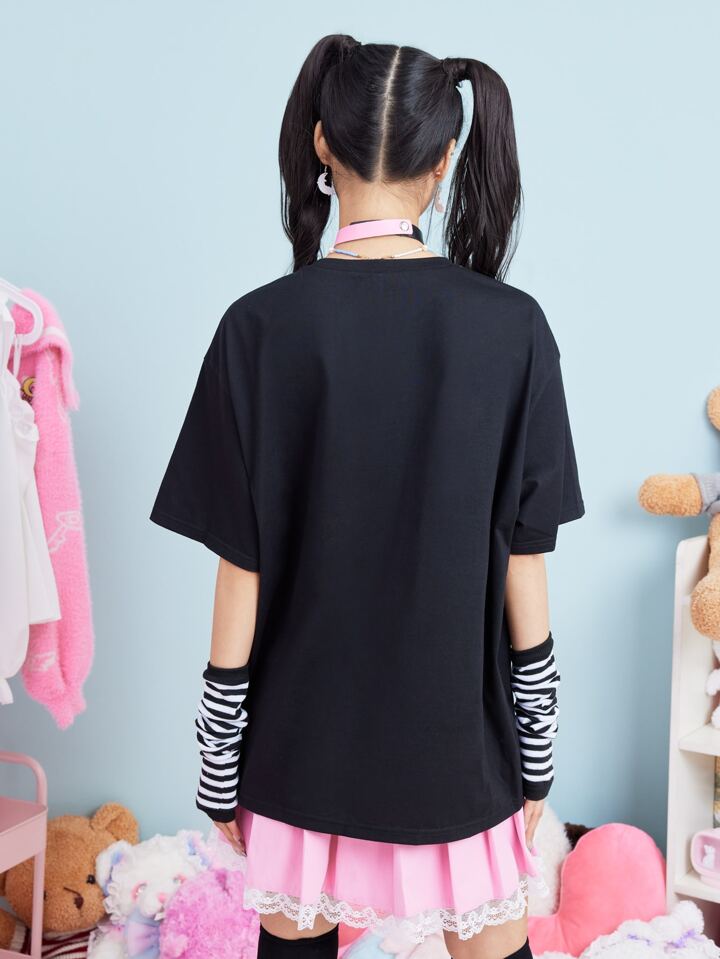 Kawaii Maglietta con spalla cadenti con stampa figura