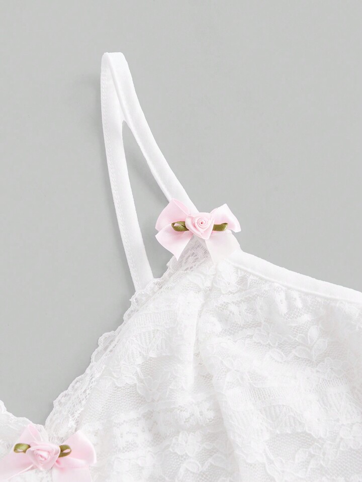 Kawaii Top bretelle sottile pizzo floreale con decorato fiocco