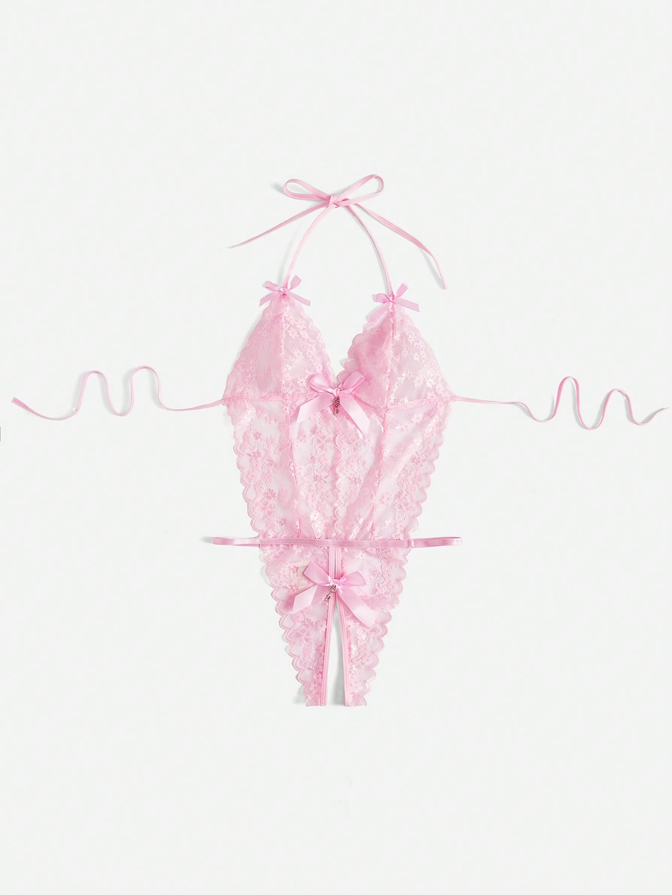 Kawaii Body teddy pizzo floreale con decorato fiocco crotchless