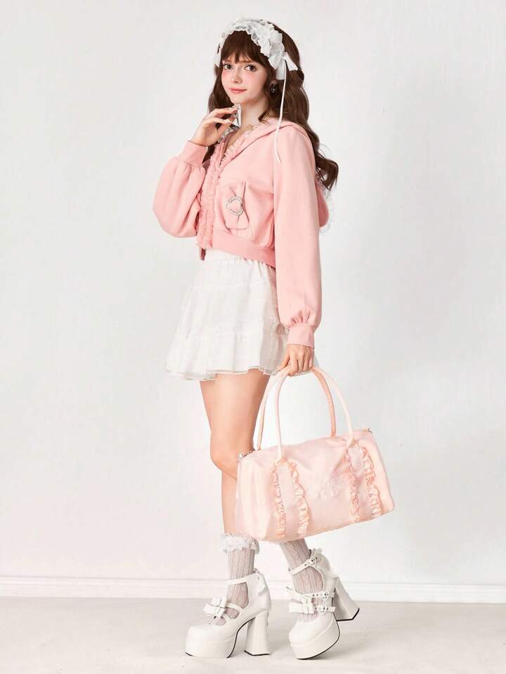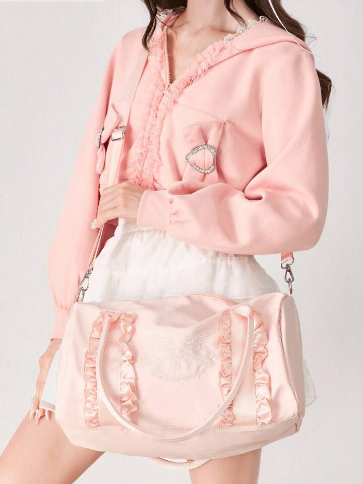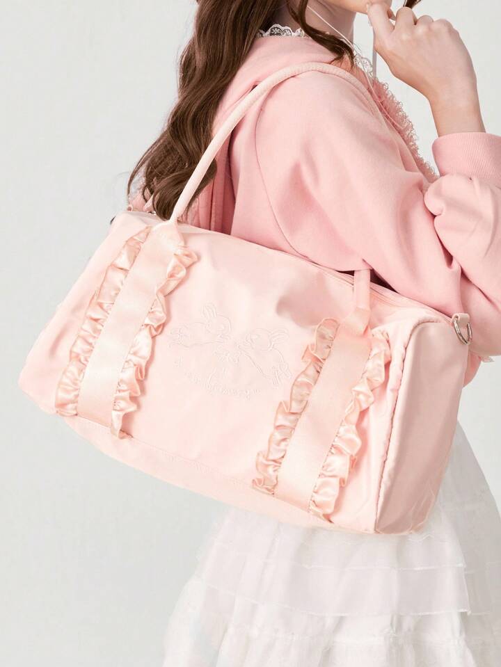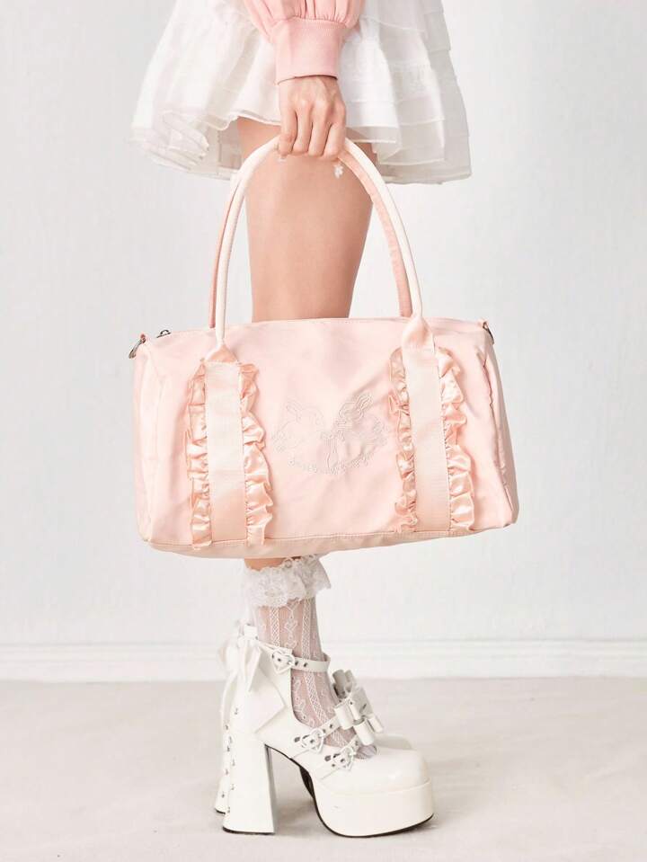 Kawaii Borsa da viaggio corta con fiocco a coniglio con motivo floreale 336027, borsa a tracolla per donne, borsa da lavoro, borsa da viaggio, borsa a tracolla e borsone da palestra/sport 2 in 1 di grande capienza e leggera