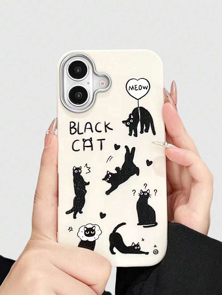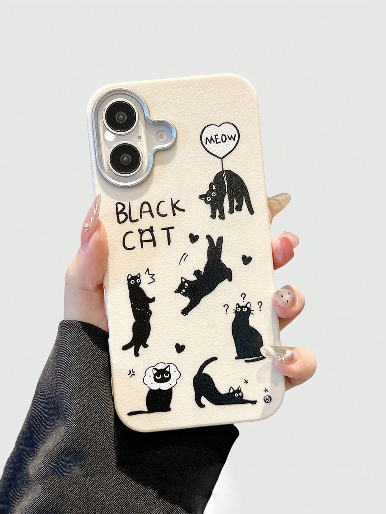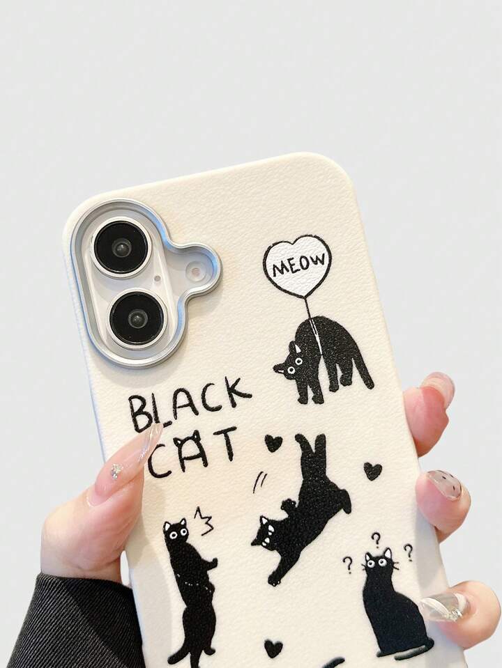 Kawaii Custodia per telefono in silicone con texture in pelle nera a motivo di gatto divertente, compatibile con iPhone 12, 13, 14 e altri modelli di telefono, custodia protettiva