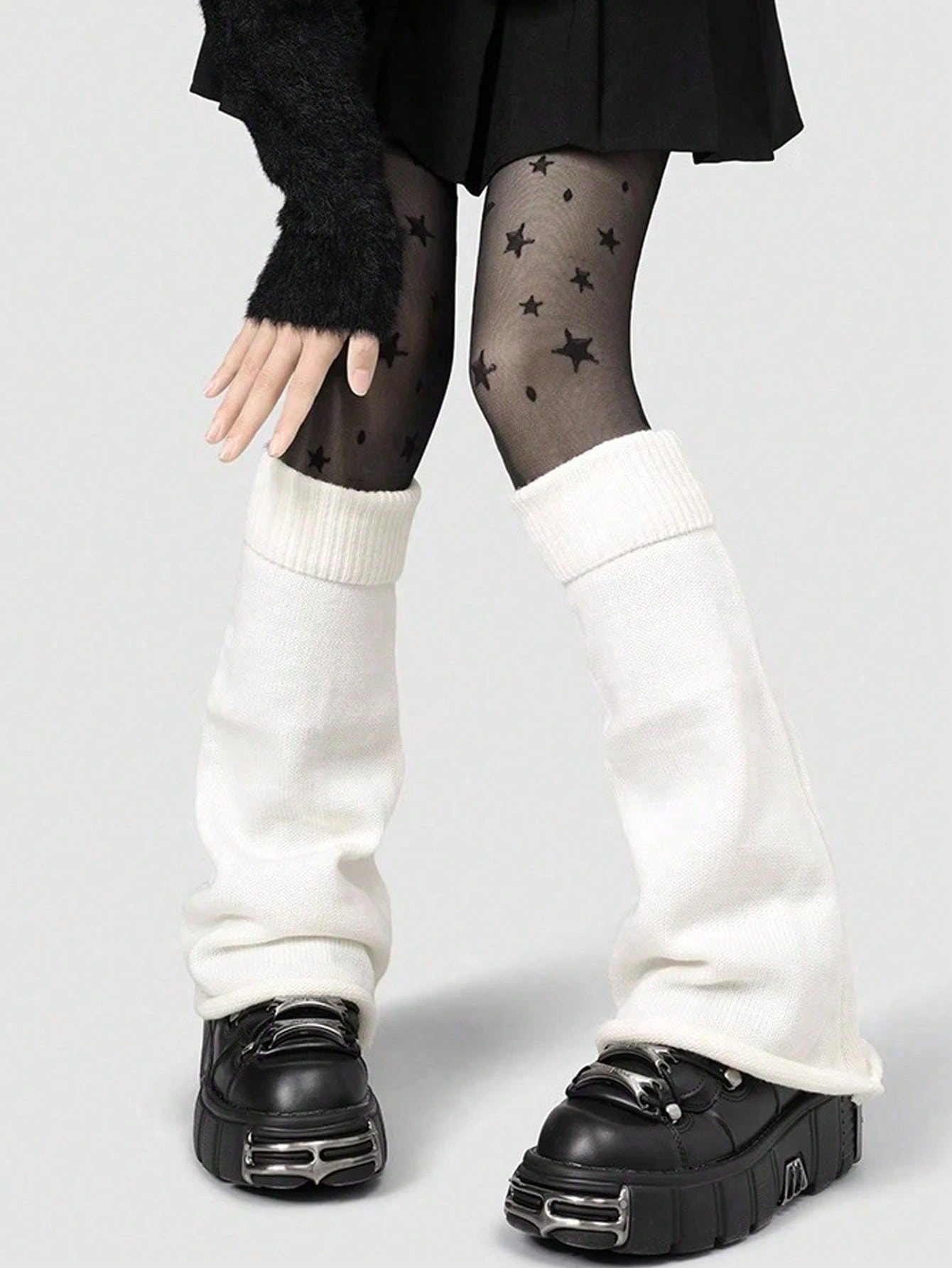 Kawaii Scaldamuscoli di stile gotico a maglia spessa con polsini a campana, per donna, adatti per l'autunno/inverno