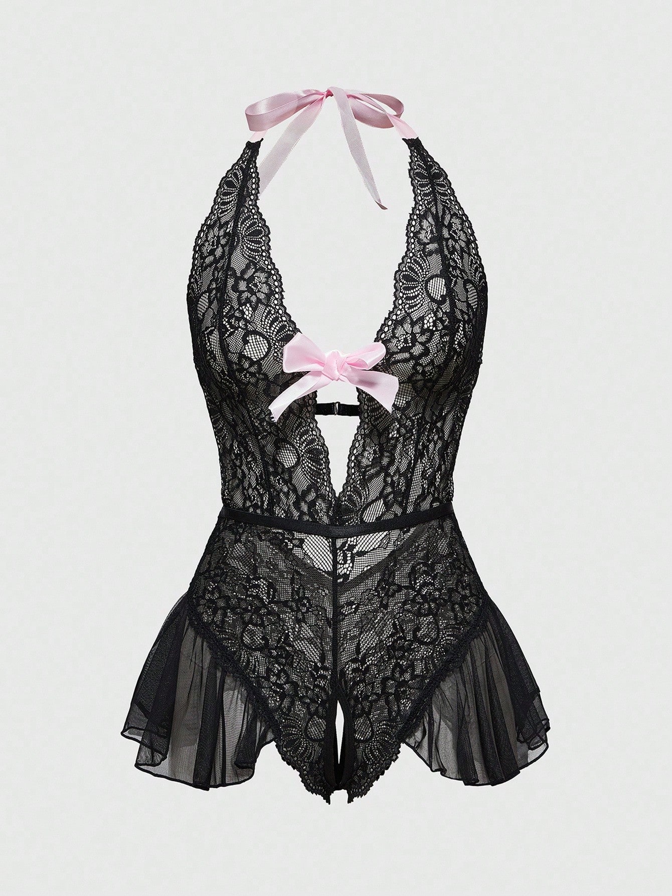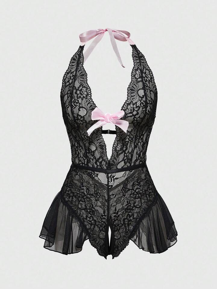 Kawaii Tuta intima con pizzo e rete, fiocco, senza cavallo, look da per donne