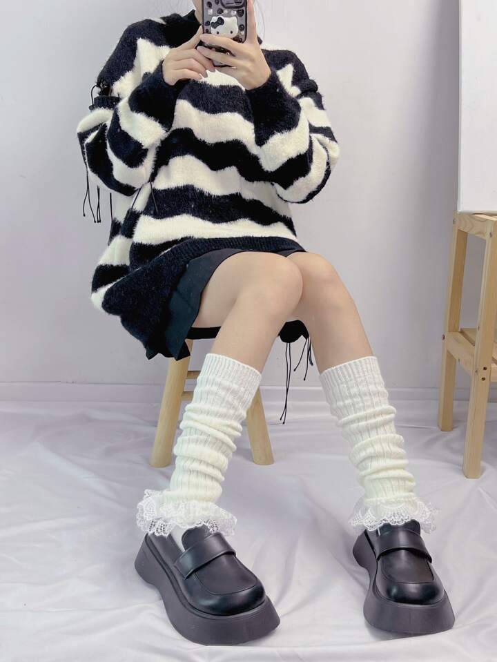 Kawaii Scaldamuscoli inserti in pizzo con bordo a volant