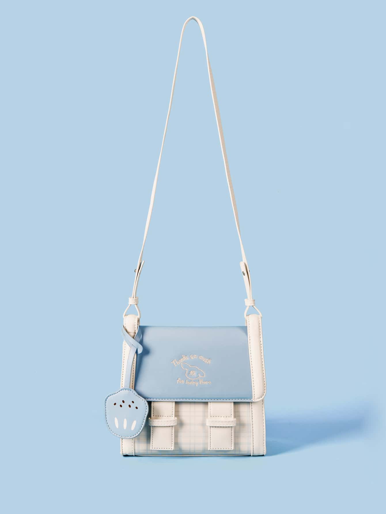 Kawaii Borsa quadrata con grafica lettera patta con ciondolo da borsa